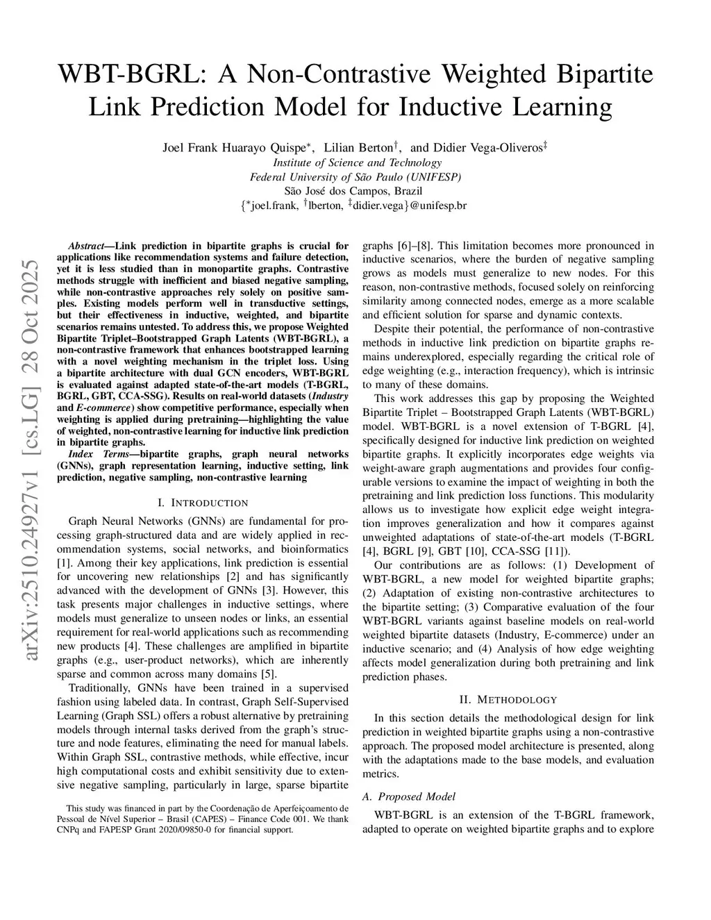 WBT-BGRL: A Non-Contrastive Weighted Bipartite Link Prediction Model for Inductive Learning