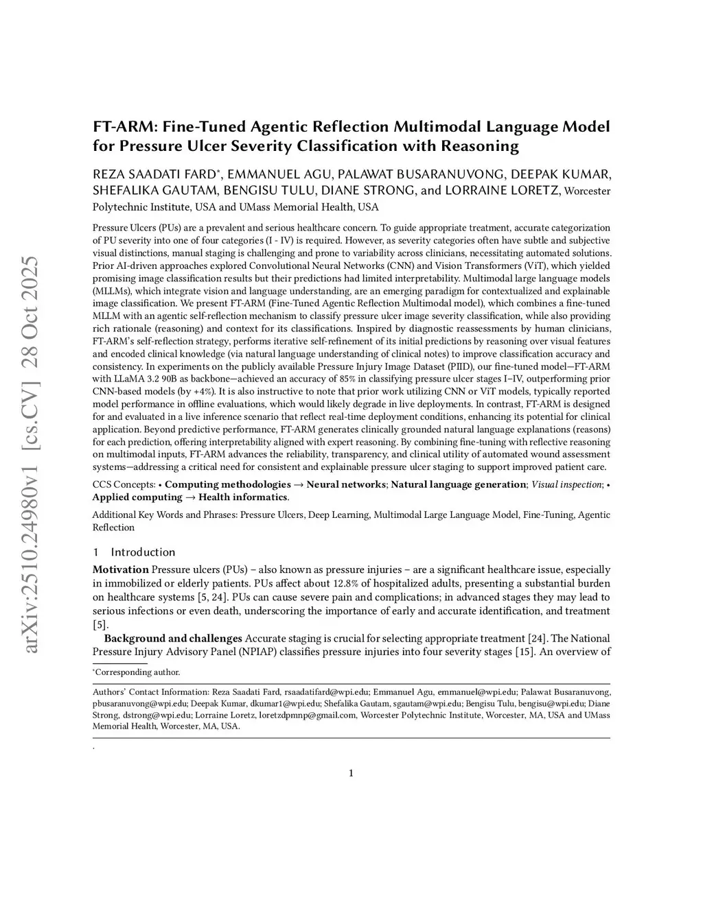 FT-ARM: Fine-Tuned Agentic Reflection Multimodal Language Model for Pressure Ulcer Severity Classification with Reasoning