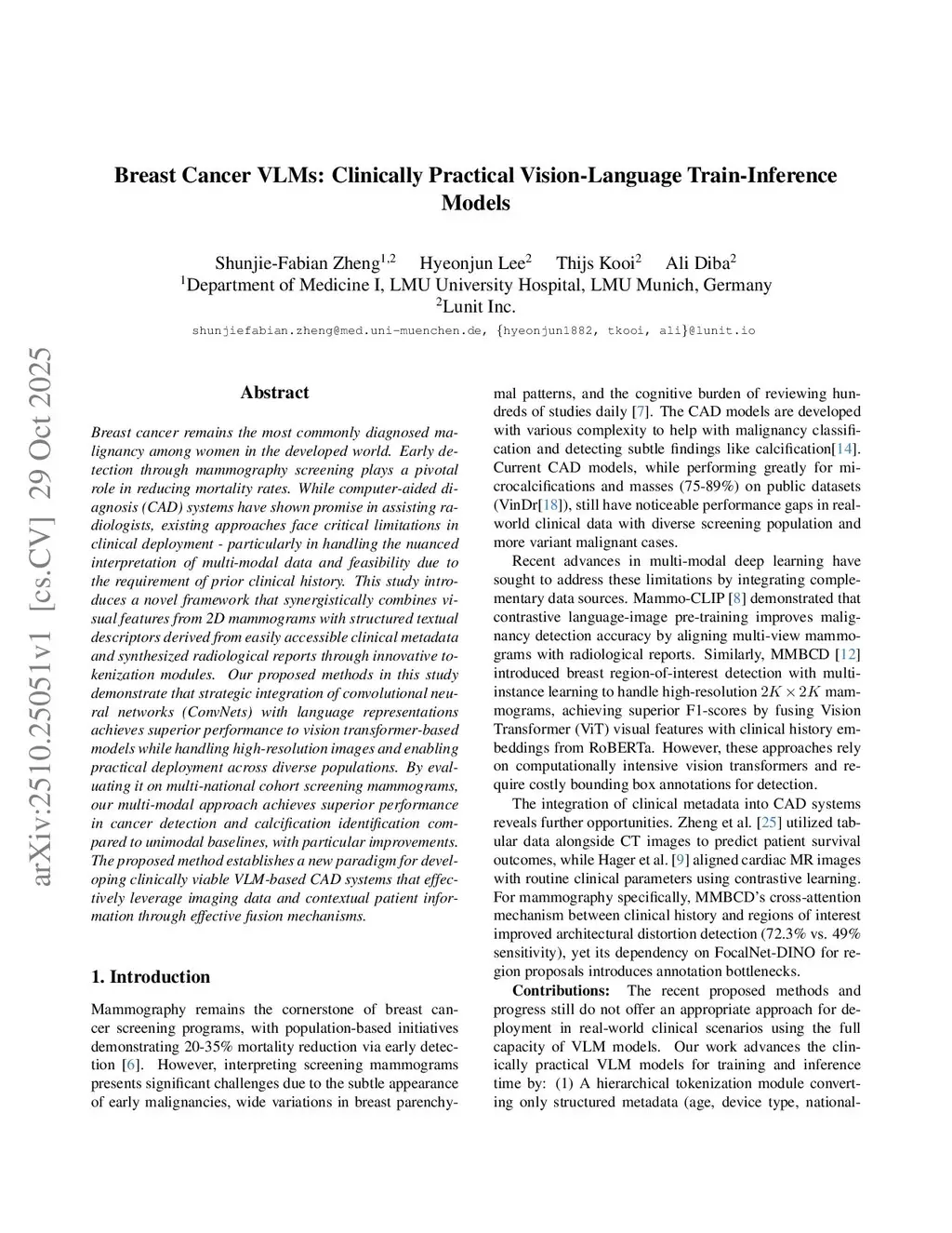 Breast Cancer VLMs: Clinically Practical Vision-Language Train-Inference Models