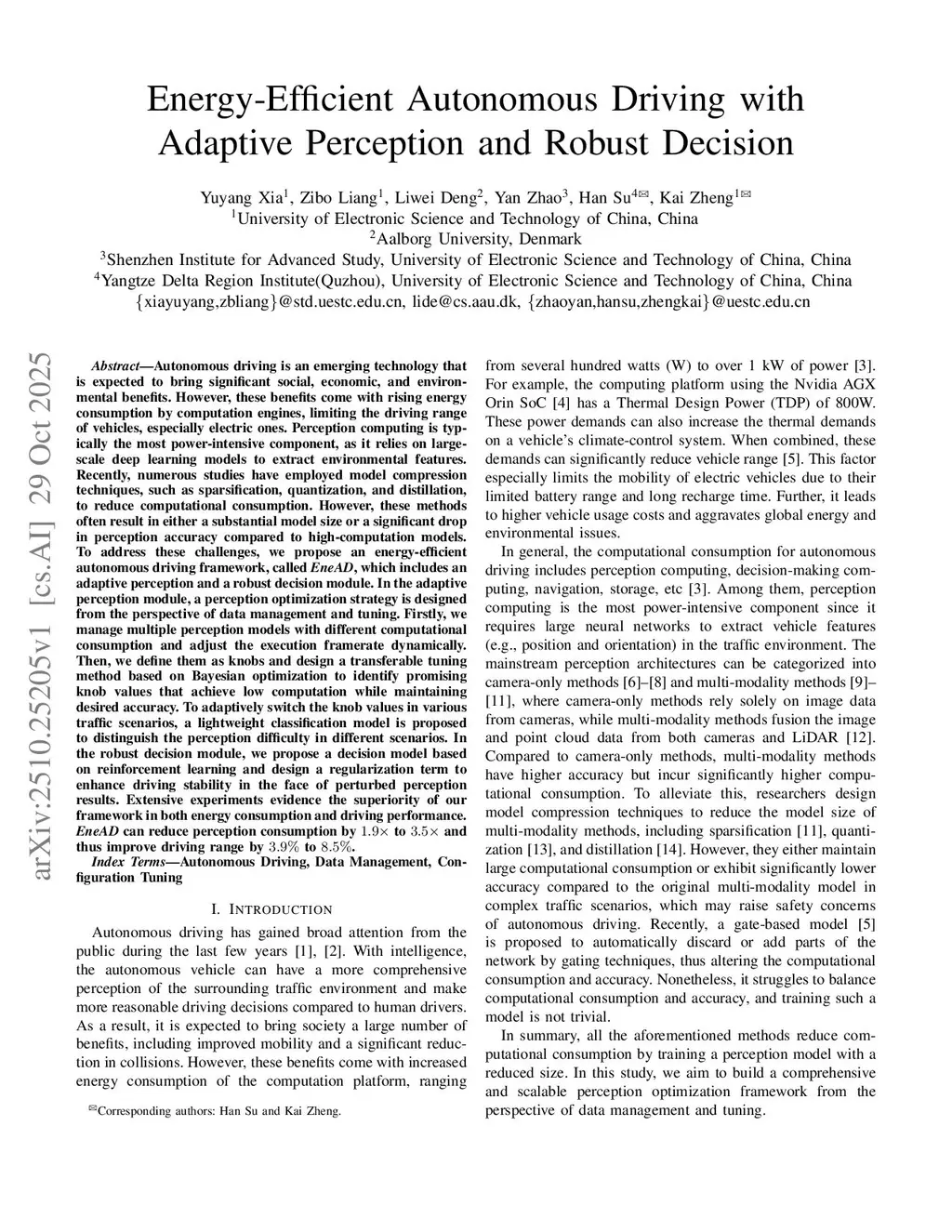 Energy-Efficient Autonomous Driving with Adaptive Perception and Robust Decision