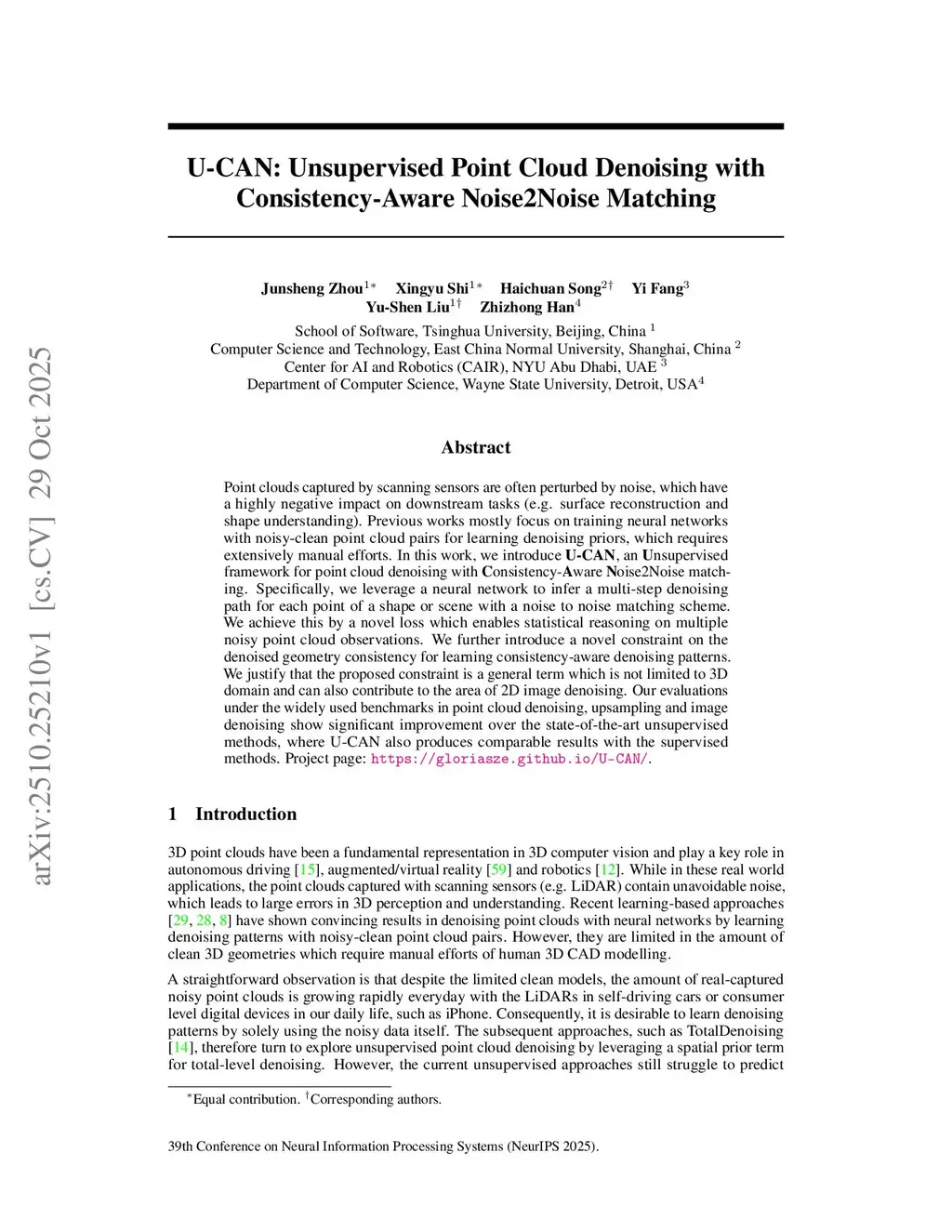 U-CAN: Unsupervised Point Cloud Denoising with Consistency-Aware Noise2Noise Matching