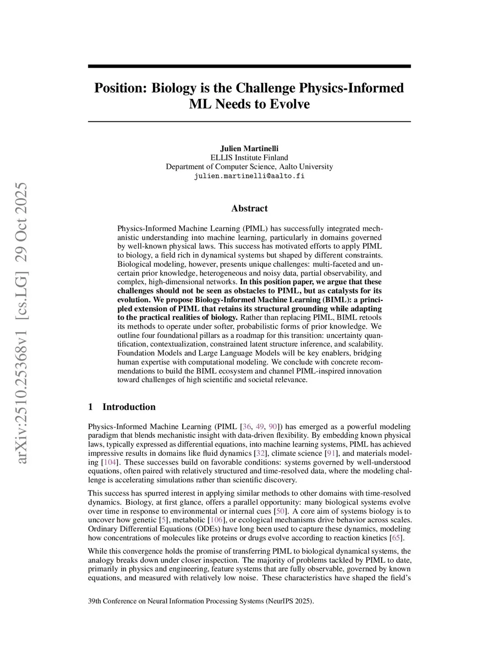 Position: Biology is the Challenge Physics-Informed ML Needs to Evolve