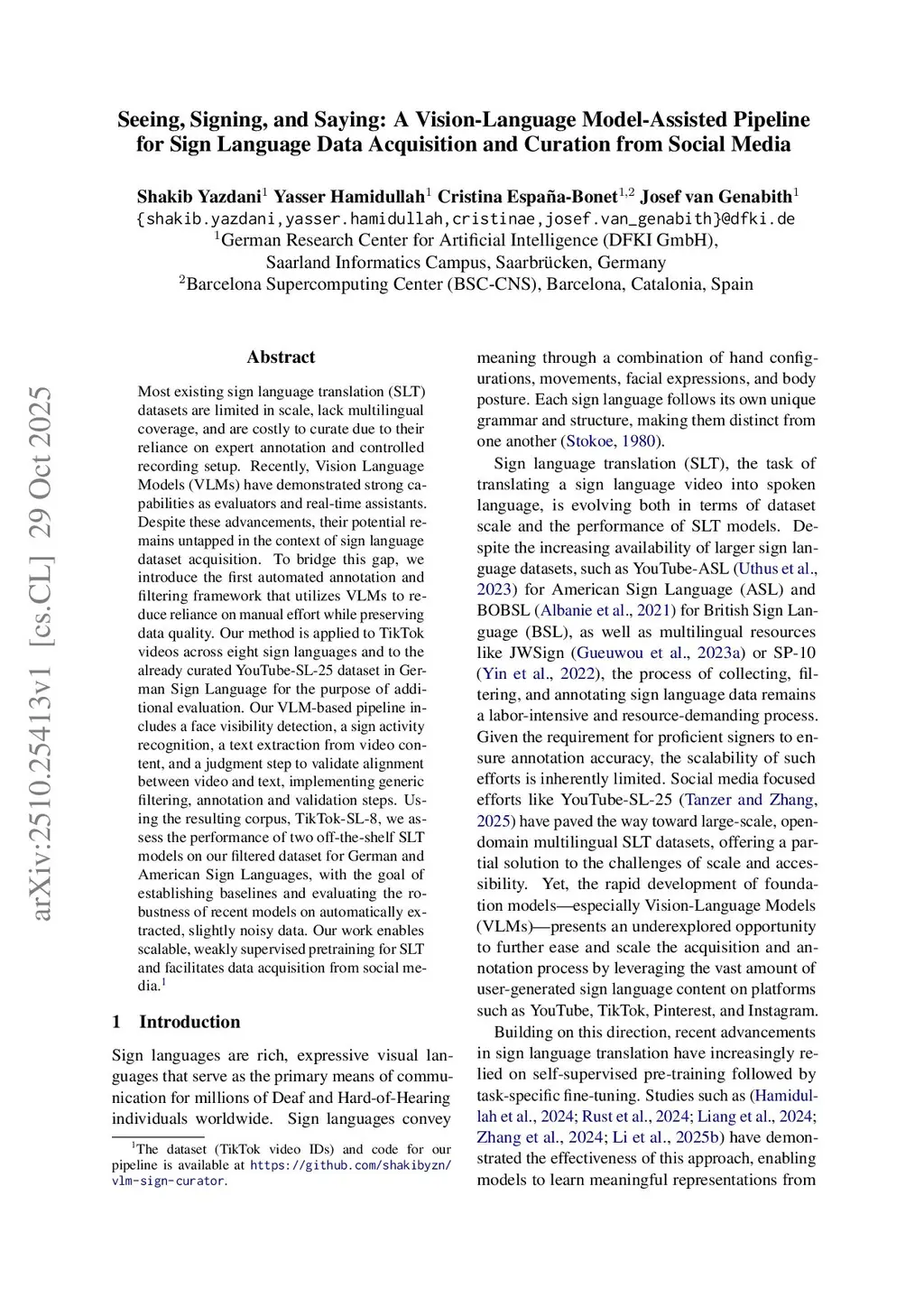 Seeing, Signing, and Saying: A Vision-Language Model-Assisted Pipeline for Sign Language Data Acquisition and Curation from Social Media