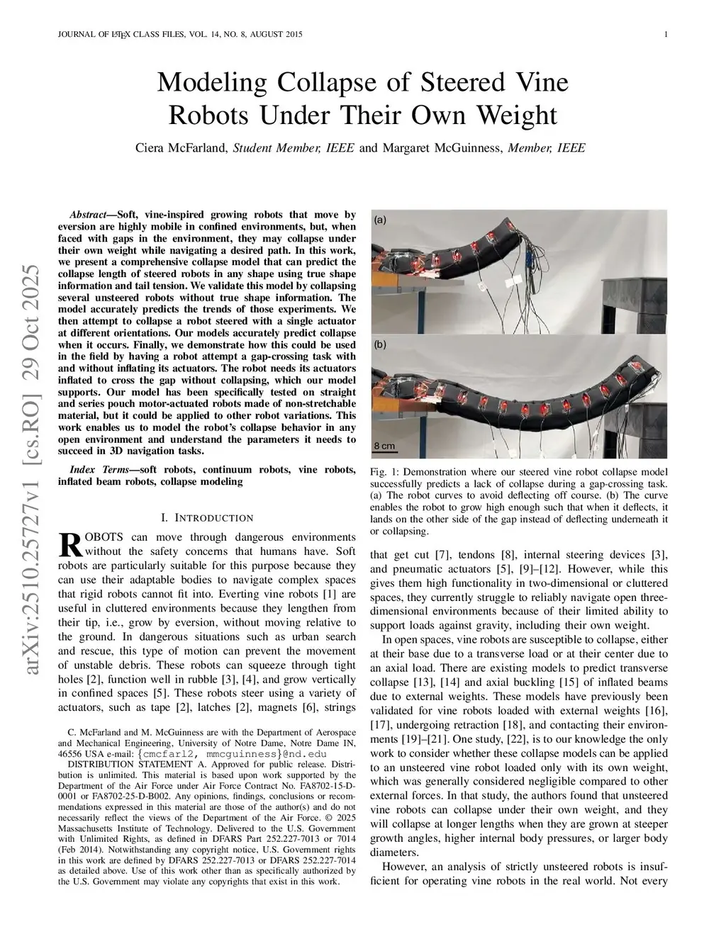 Soft, vine-inspired growing robots that move by eversion are highly mobile in confined environments, but, when faced with gaps in the environment, they may collapse under their own weight while navigating a desired path. In this work, we present a comprehensive collapse model that can predict the collapse length of steered robots in any shape using true shape information and tail tension. We validate this model by collapsing several unsteered robots without true shape information. The model accurately predicts the trends of those experiments. We then attempt to collapse a robot steered with a single actuator at different orientations. Our models accurately predict collapse when it occurs. Finally, we demonstrate how this could be used in the field by having a robot attempt a gap-crossing task with and without inflating its actuators. The robot needs its actuators inflated to cross the gap without collapsing, which our model supports. Our model has been specifically tested on straight and series pouch motor-actuated robots made of non-stretchable material, but it could be applied to other robot variations. This work enables us to model the robot's collapse behavior in any open environment and understand the parameters it needs to succeed in 3D navigation tasks.