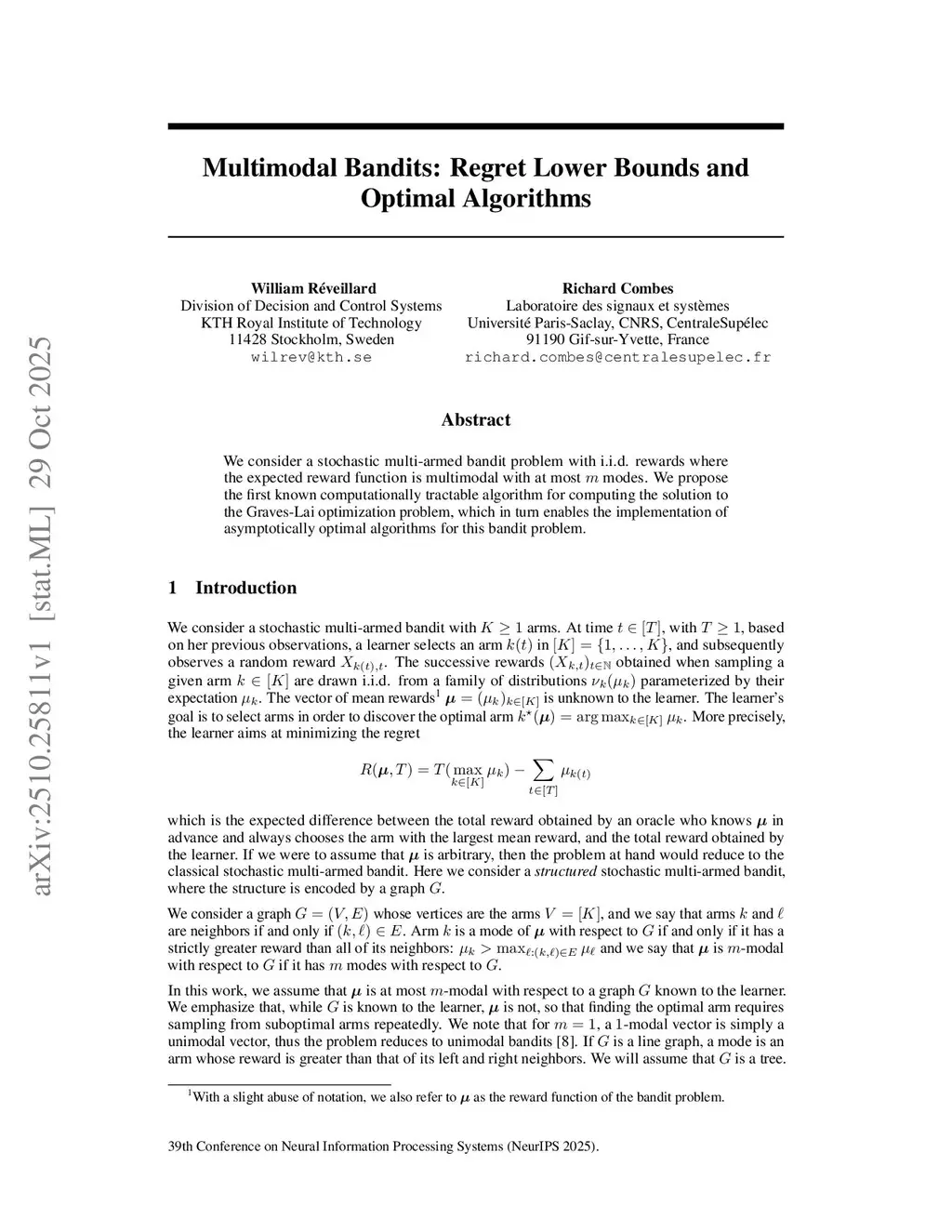 Multimodal Bandits: Regret Lower Bounds and Optimal Algorithms