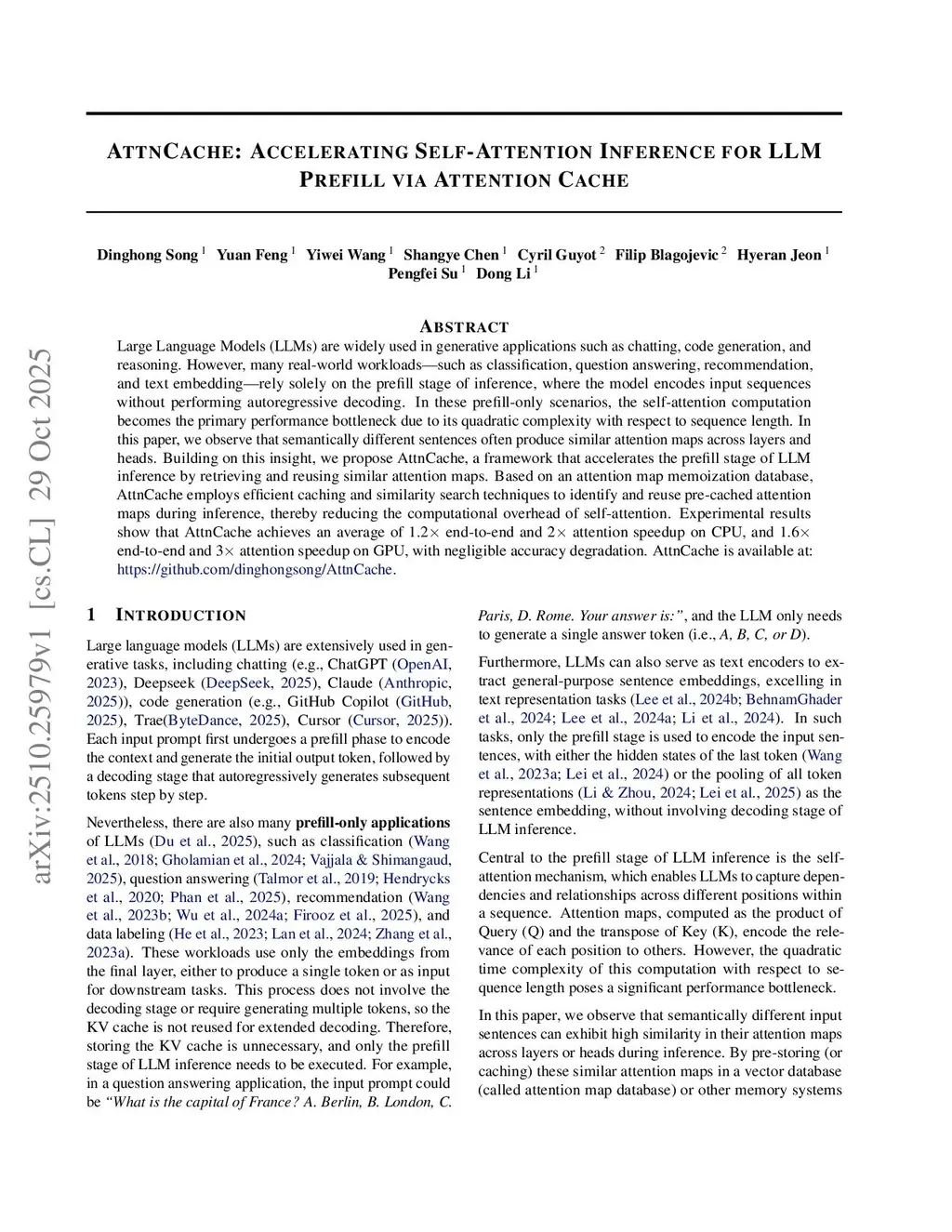 AttnCache: Accelerating Self-Attention Inference for LLM Prefill via Attention Cache