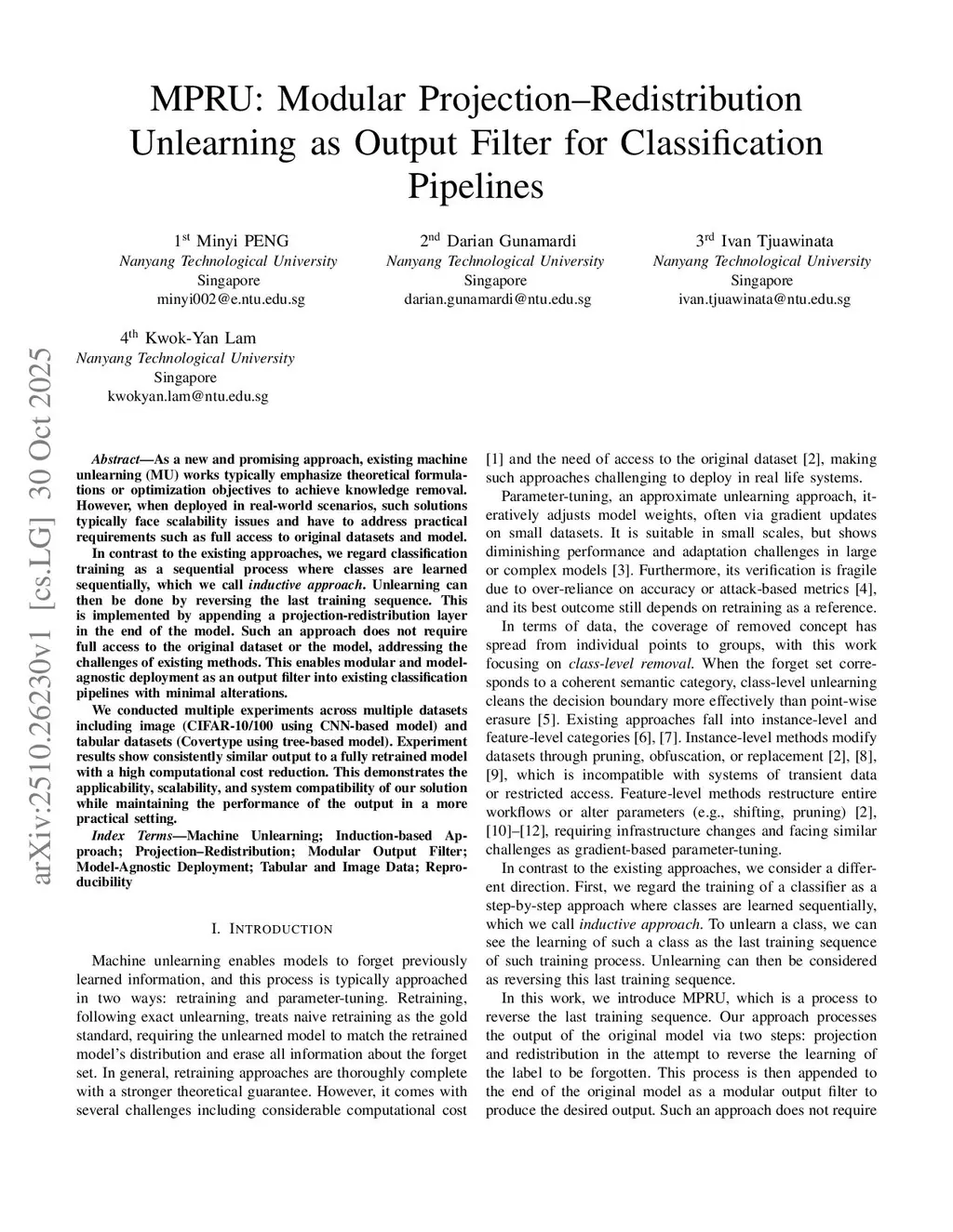 MPRU: Modular Projection-Redistribution Unlearning as Output Filter for Classification Pipelines