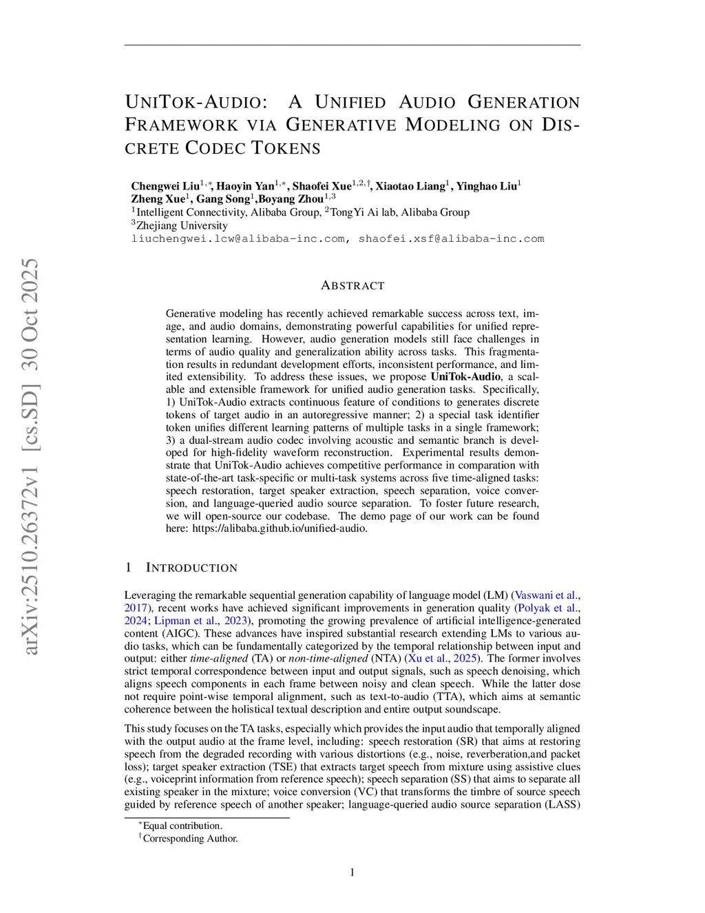 UniTok-Audio: A Unified Audio Generation Framework via Generative Modeling on Discrete Codec Tokens