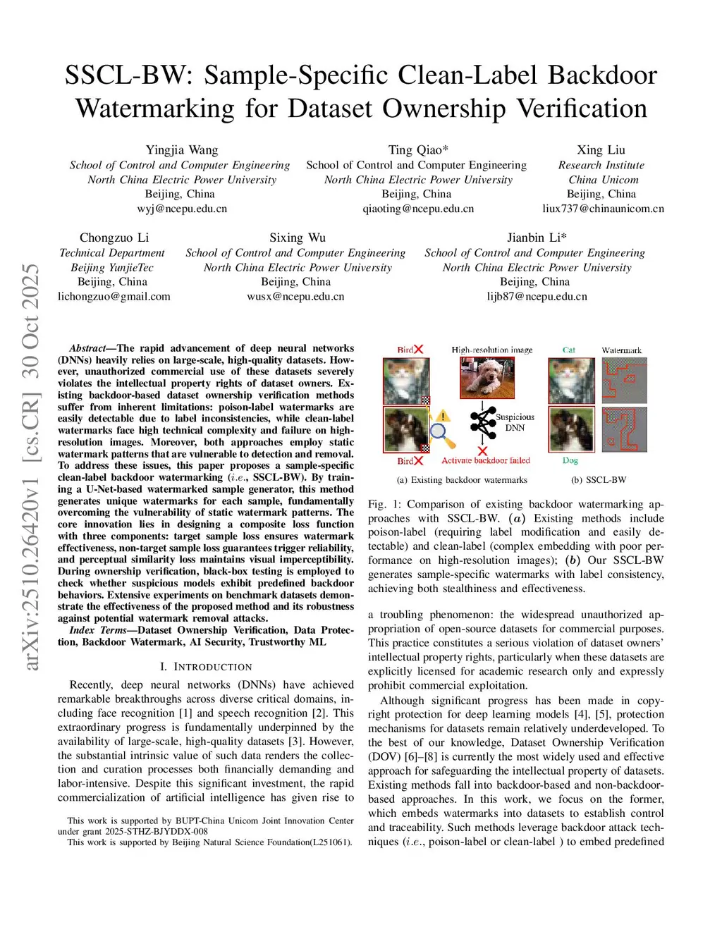SSCL-BW: Sample-Specific Clean-Label Backdoor Watermarking for Dataset Ownership Verification