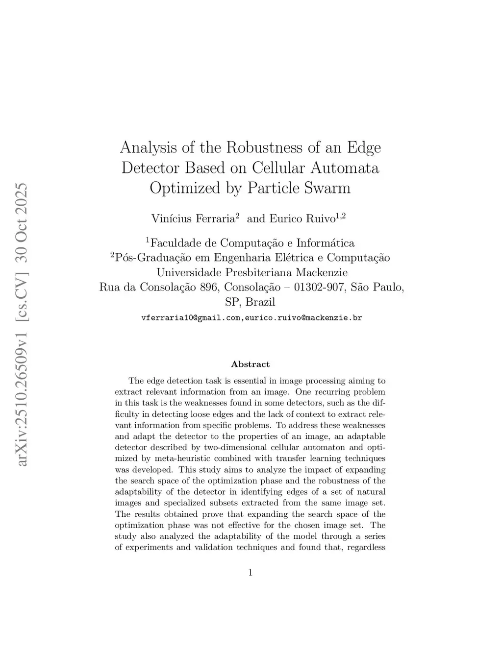 Analysis of the Robustness of an Edge Detector Based on Cellular Automata Optimized by Particle Swarm