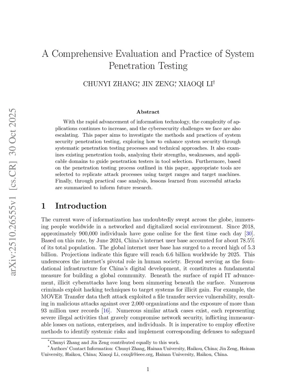 With the rapid advancement of information technology, the complexity of applications continues to increase, and the cybersecurity challenges we face are also escalating. This paper aims to investigate the methods and practices of system security penetration testing, exploring how to enhance system security through systematic penetration testing processes and technical approaches. It also examines existing penetration tools, analyzing their strengths, weaknesses, and applicable domains to guide penetration testers in tool selection. Furthermore, based on the penetration testing process outlined in this paper, appropriate tools are selected to replicate attack processes using target ranges and target machines. Finally, through practical case analysis, lessons learned from successful attacks are summarized to inform future research.