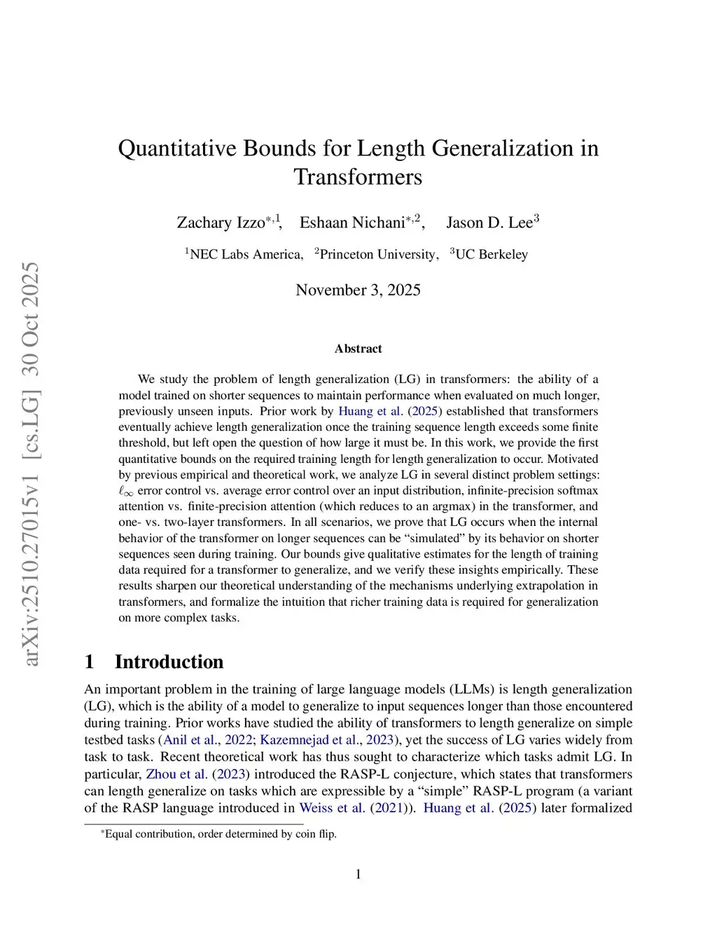 We study the problem of length generalization (LG) in transformers: the ability of a model trained on shorter sequences to maintain performance when evaluated on much longer, previously unseen inputs. Prior work by Huang et al. (2025) established that transformers eventually achieve length generalization once the training sequence length exceeds some finite threshold, but left open the question of how large it must be. In this work, we provide the first quantitative bounds on the required training length for length generalization to occur. Motivated by previous empirical and theoretical work, we analyze LG in several distinct problem settings: error control vs. average error control over an input distribution, infinite-precision softmax attention vs. finite-precision attention (which reduces to an argmax) in the transformer, and one- vs. two-layer transformers. In all scenarios, we prove that LG occurs when the internal behavior of the transformer on longer sequences can be "simulated" by its behavior on shorter sequences seen during training. Our bounds give qualitative estimates for the length of training data required for a transformer to generalize, and we verify these insights empirically. These results sharpen our theoretical understanding of the mechanisms underlying extrapolation in transformers, and formalize the intuition that richer training data is required for generalization on more complex tasks.