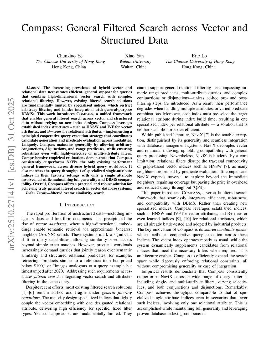 The increasing prevalence of hybrid vector and relational data necessitates efficient, general support for queries that combine high-dimensional vector search with complex relational filtering. However, existing filtered search solutions are fundamentally limited by specialized indices, which restrict arbitrary filtering and hinder integration with general-purpose DBMSs. This work introduces \textsc{Compass}, a unified framework that enables general filtered search across vector and structured data without relying on new index designs. Compass leverages established index structures -- such as HNSW and IVF for vector attributes, and B+-trees for relational attributes -- implementing a principled cooperative query execution strategy that coordinates candidate generation and predicate evaluation across modalities. Uniquely, Compass maintains generality by allowing arbitrary conjunctions, disjunctions, and range predicates, while ensuring robustness even with highly-selective or multi-attribute filters. Comprehensive empirical evaluations demonstrate that Compass consistently outperforms NaviX, the only existing performant general framework, across diverse hybrid query workloads. It also matches the query throughput of specialized single-attribute indices in their favorite settings with only a single attribute involved, all while maintaining full generality and DBMS compatibility. Overall, Compass offers a practical and robust solution for achieving truly general filtered search in vector database systems.