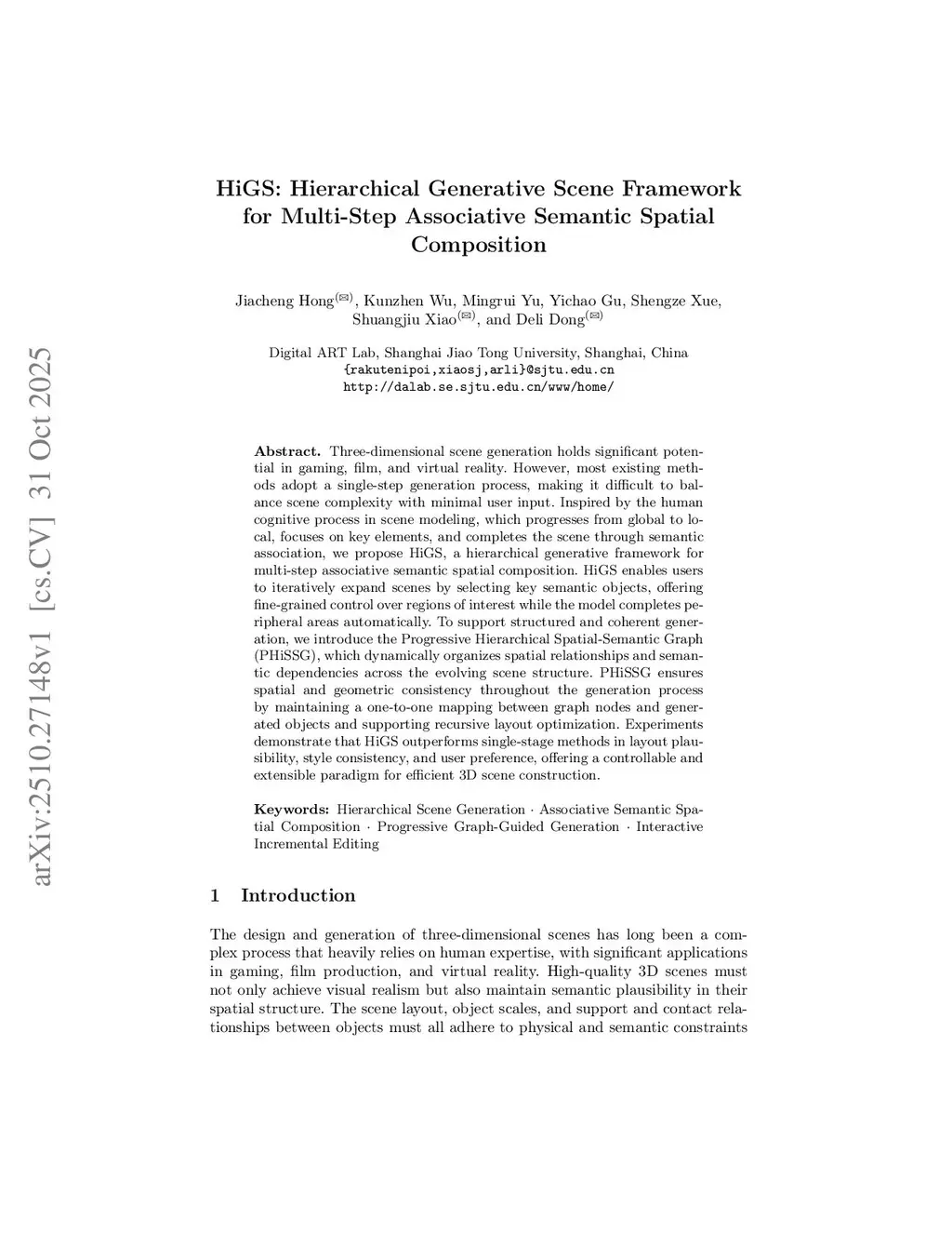 HiGS: Hierarchical Generative Scene Framework for Multi-Step Associative Semantic Spatial Composition