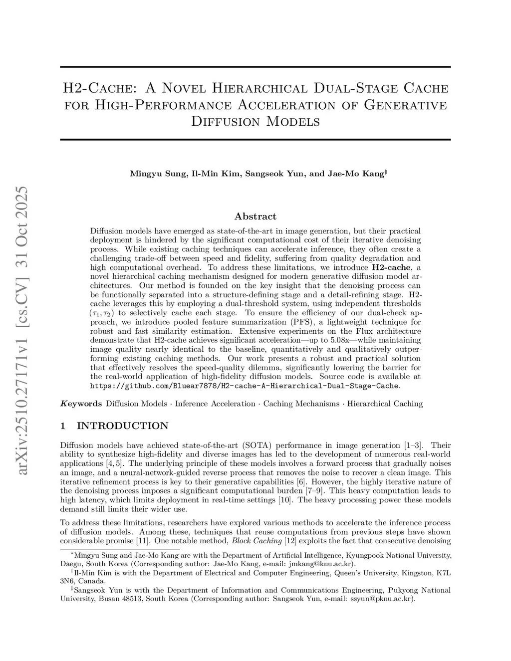 H2-Cache: A Novel Hierarchical Dual-Stage Cache for High-Performance Acceleration of Generative Diffusion Models