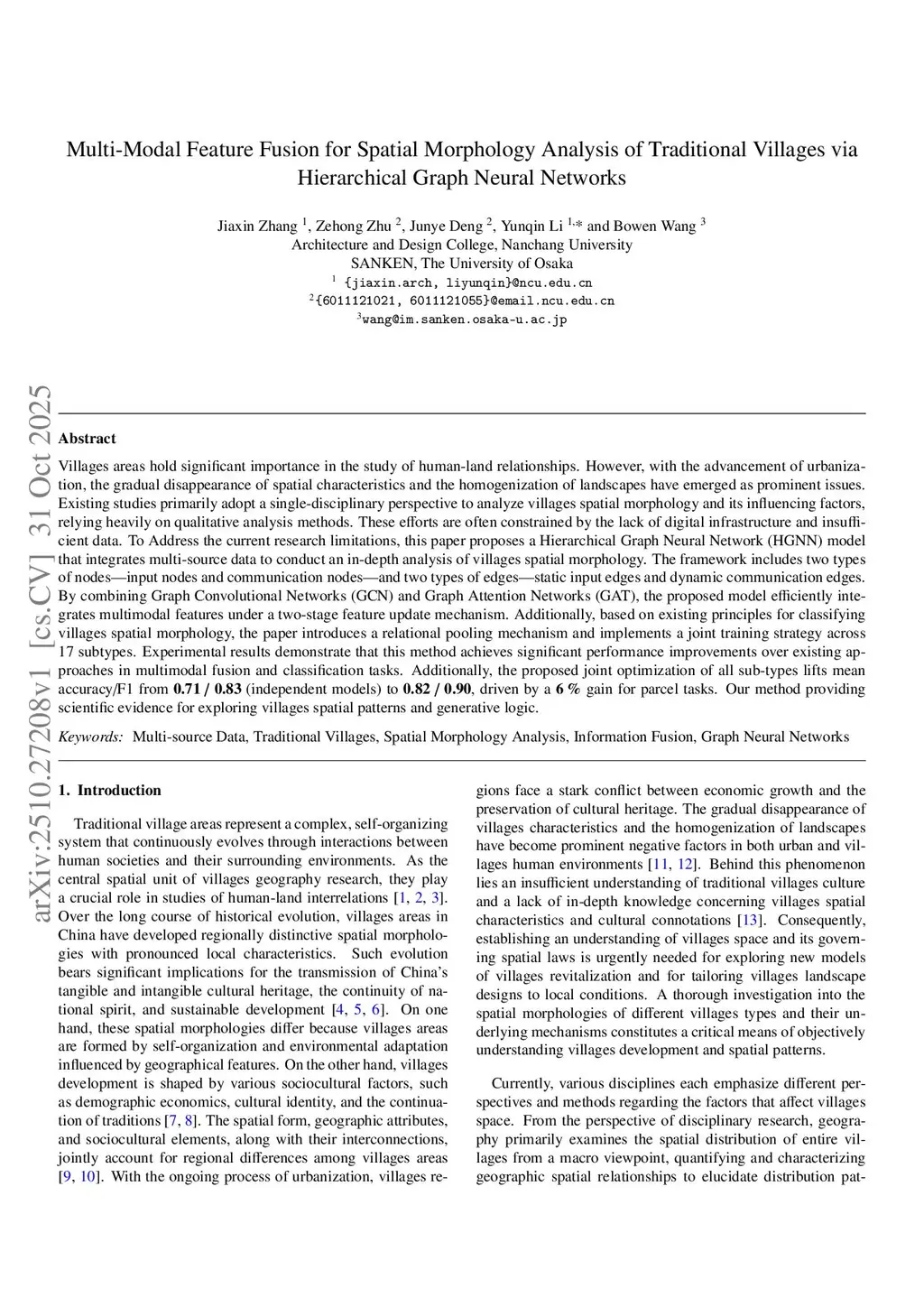 Multi-Modal Feature Fusion for Spatial Morphology Analysis of Traditional Villages via Hierarchical Graph Neural Networks