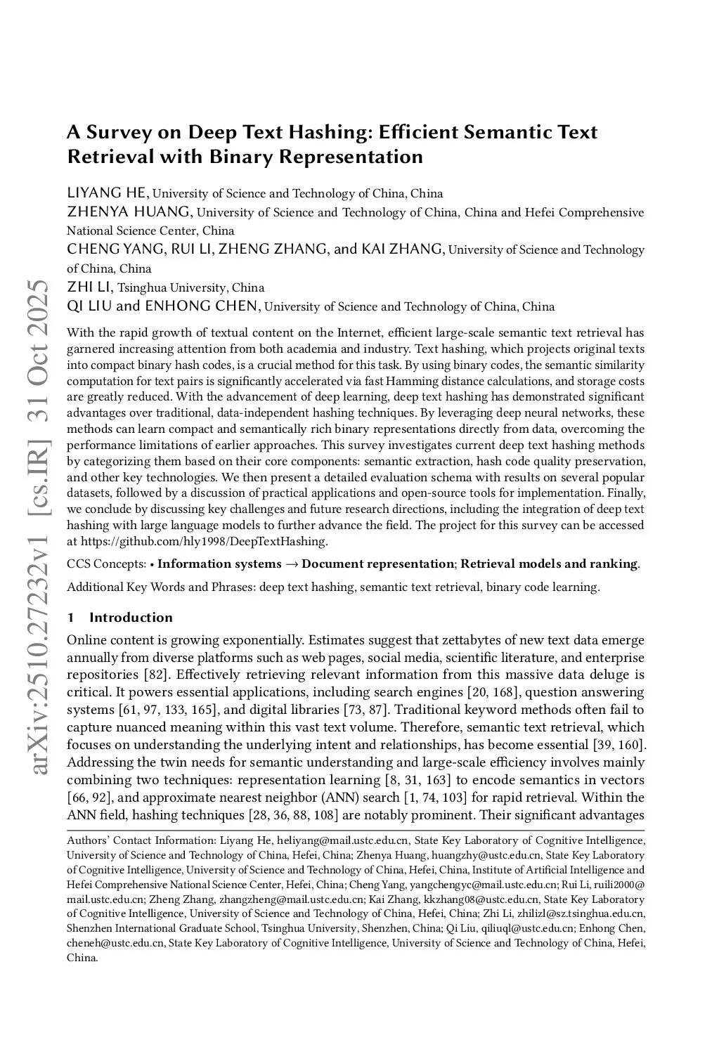 A Survey on Deep Text Hashing: Efficient Semantic Text Retrieval with Binary Representation