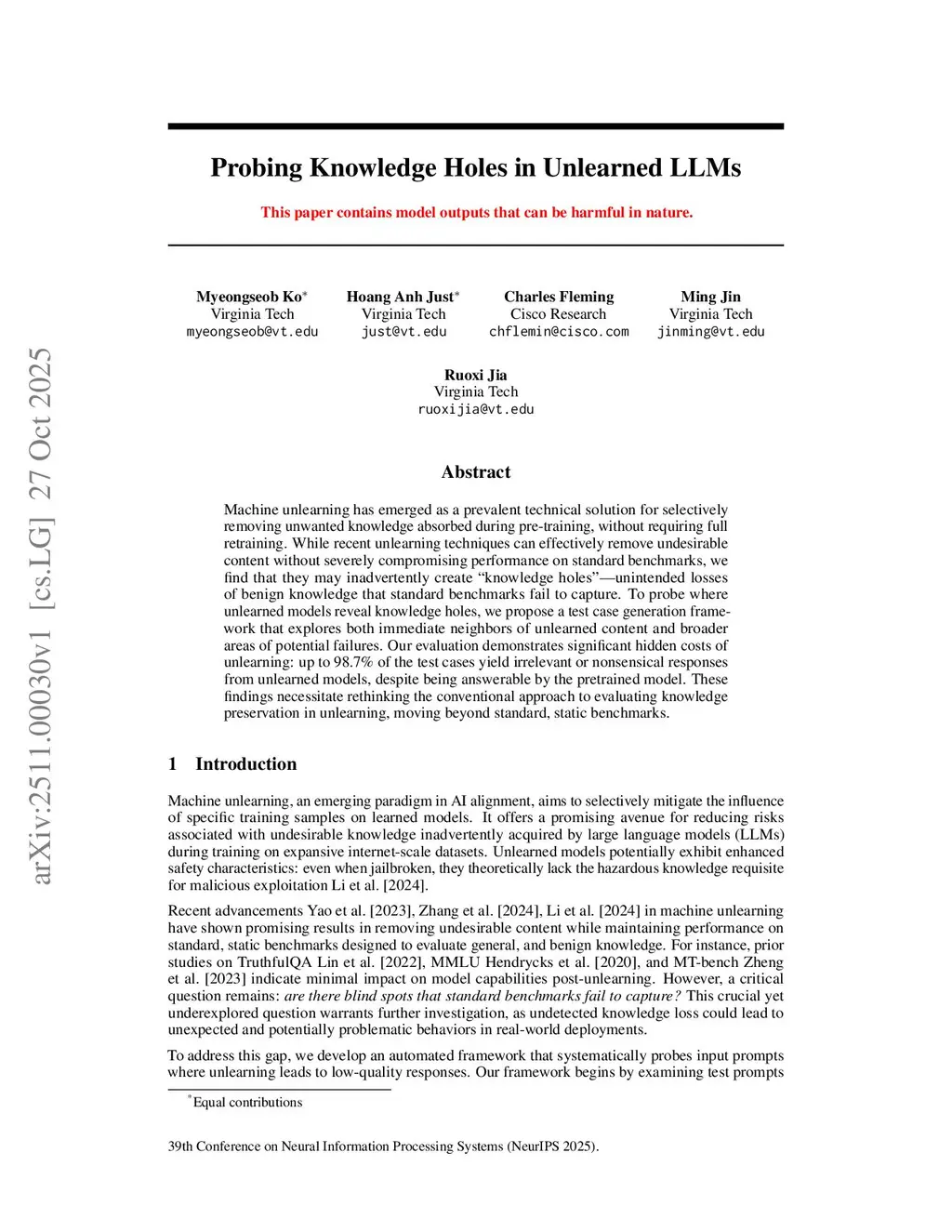 Probing Knowledge Holes in Unlearned LLMs