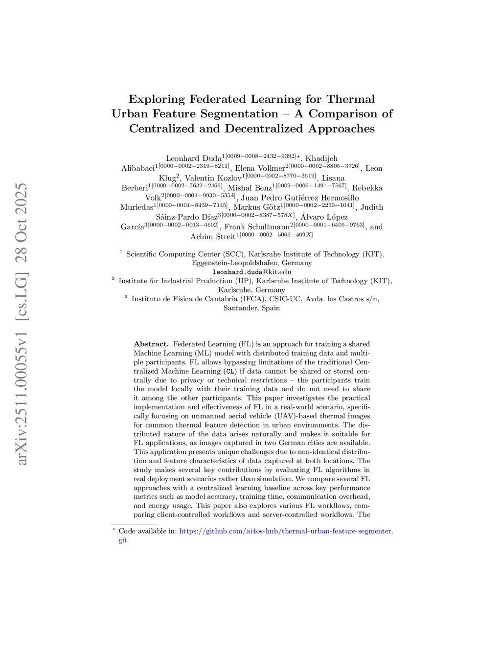 Exploring Federated Learning for Thermal Urban Feature Segmentation -- A Comparison of Centralized and Decentralized Approaches