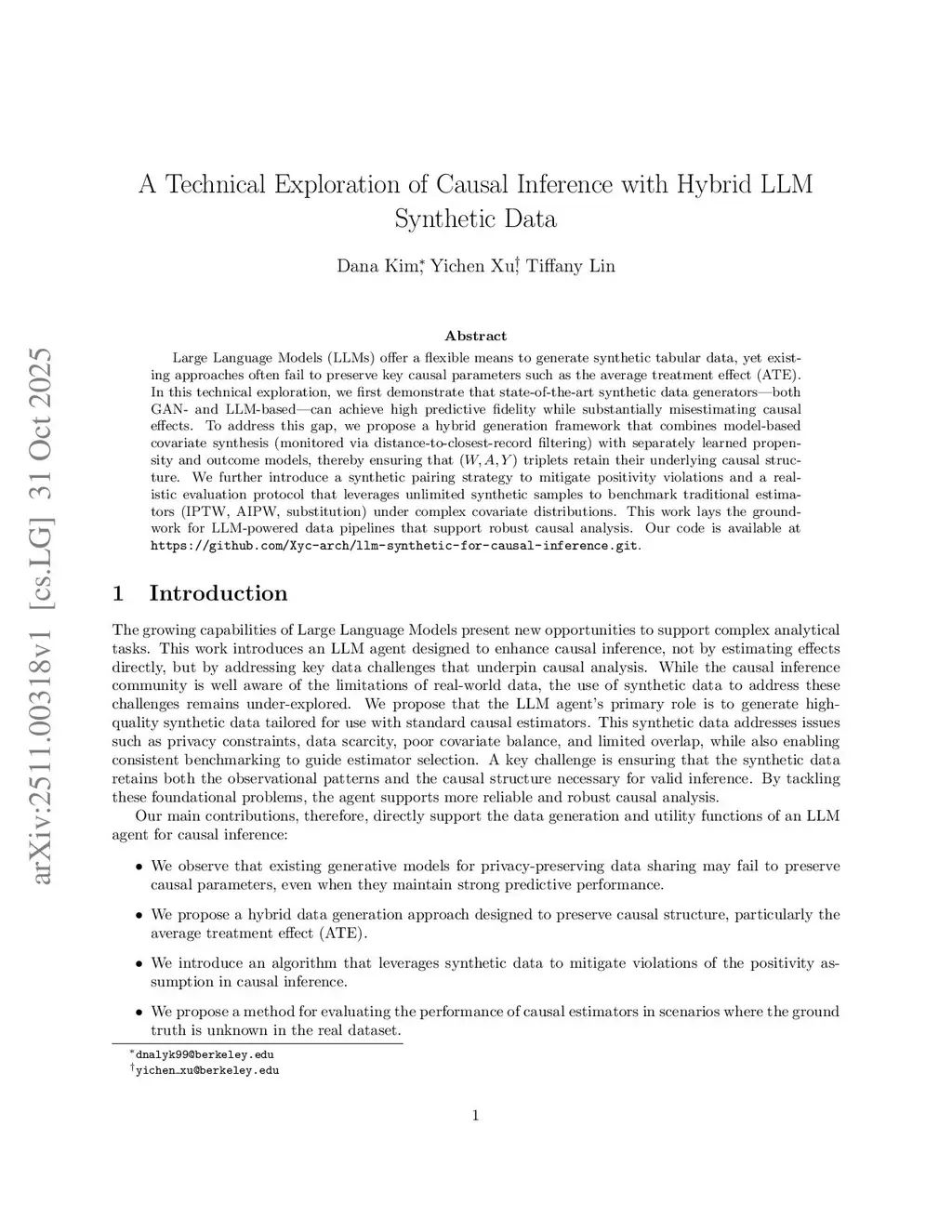 A Technical Exploration of Causal Inference with Hybrid LLM Synthetic Data