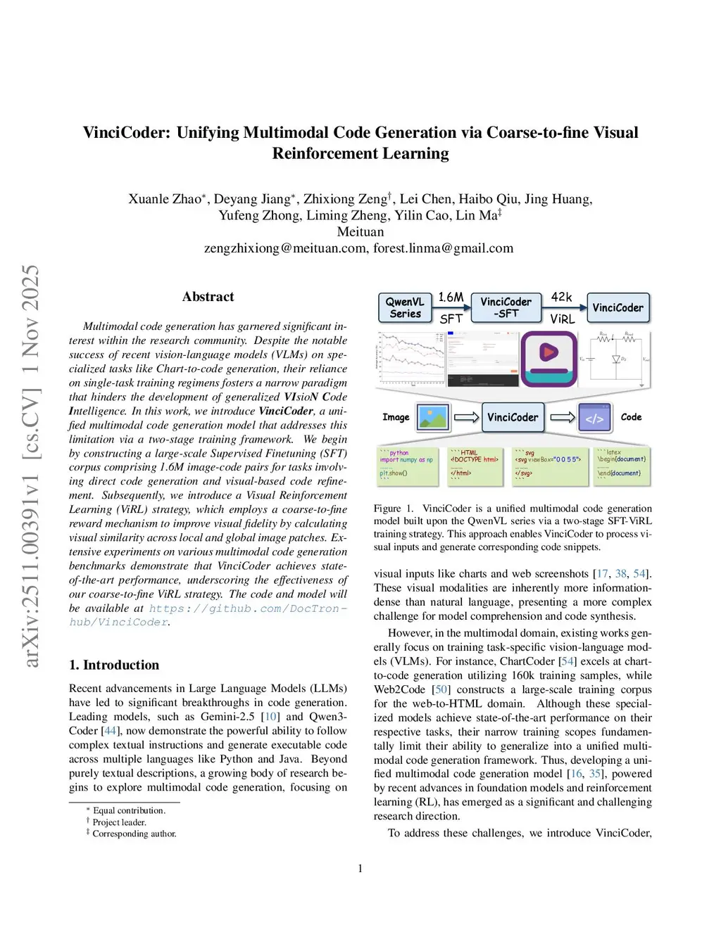 VinciCoder: Unifying Multimodal Code Generation via Coarse-to-fine Visual Reinforcement Learning
