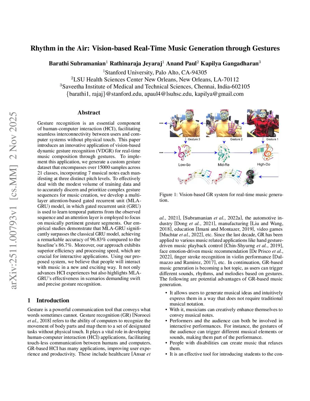 Rhythm in the Air: Vision-based Real-Time Music Generation through Gestures
