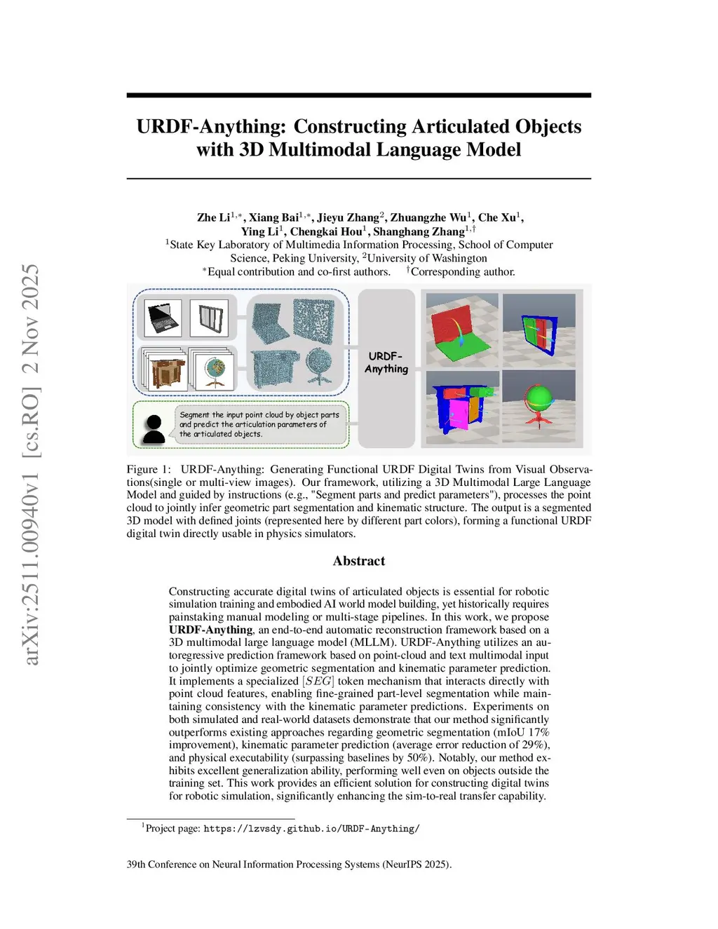 URDF-Anything: Constructing Articulated Objects with 3D Multimodal Language Model