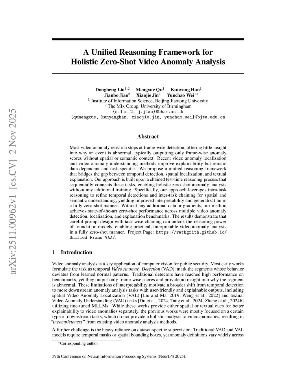 A Unified Reasoning Framework for Holistic Zero-Shot Video Anomaly Analysis