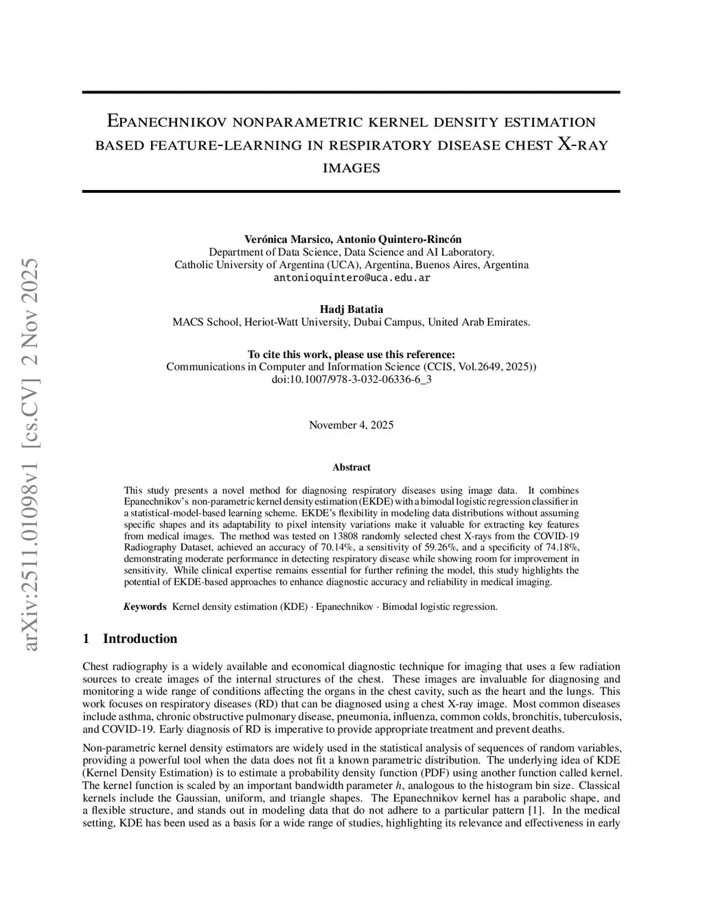 Epanechnikov nonparametric kernel density estimation based feature-learning in respiratory disease chest X-ray images