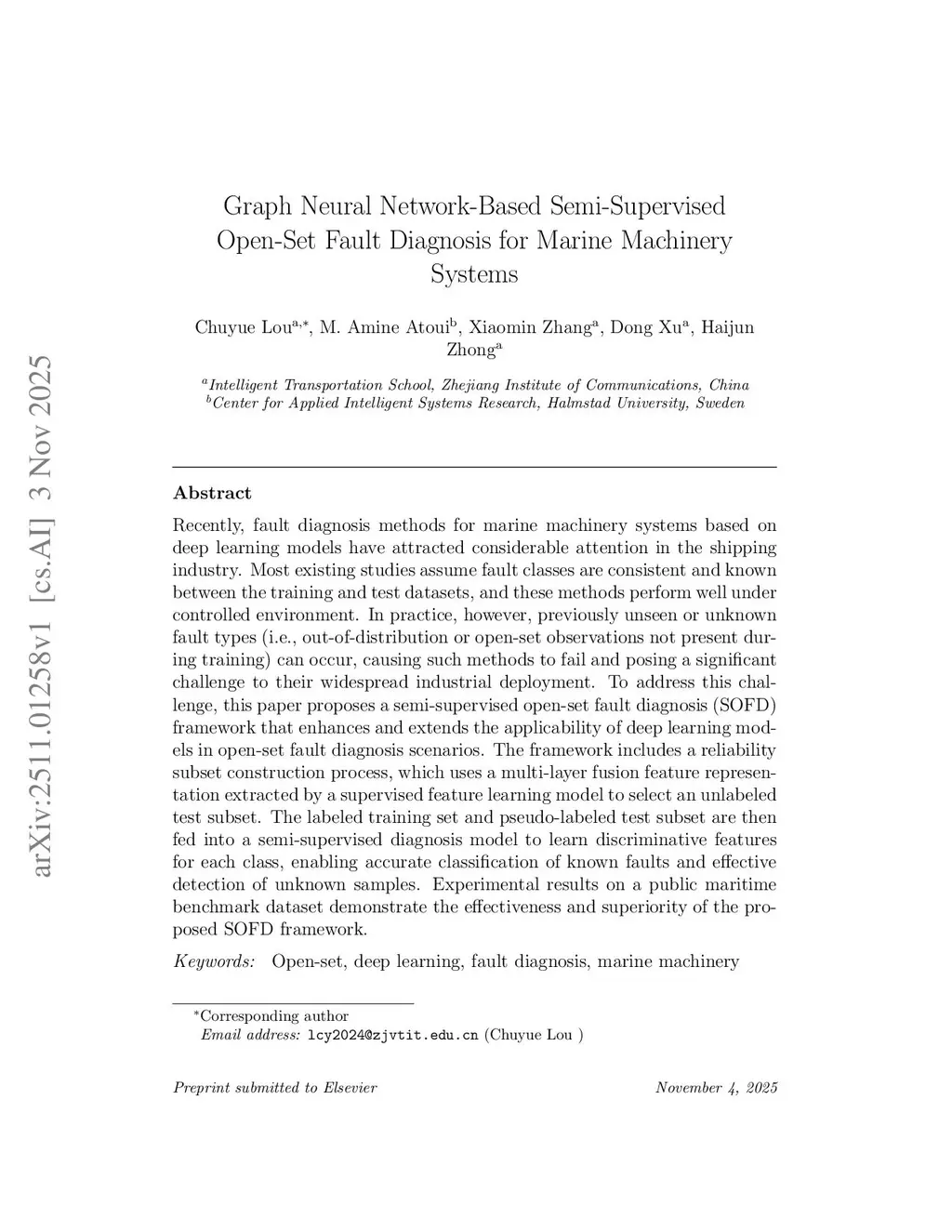 Graph Neural Network-Based Semi-Supervised Open-Set Fault Diagnosis for Marine Machinery Systems