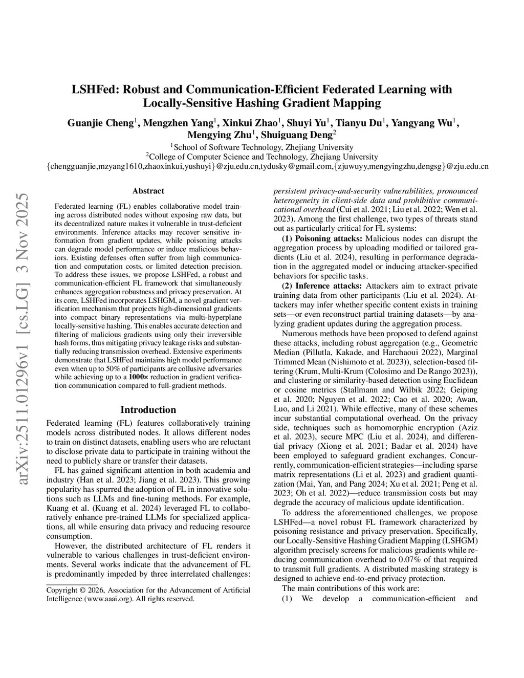 Federated learning (FL) enables collaborative model training across distributed nodes without exposing raw data, but its decentralized nature makes it vulnerable in trust-deficient environments. Inference attacks may recover sensitive information from gradient updates, while poisoning attacks can degrade model performance or induce malicious behaviors. Existing defenses often suffer from high communication and computation costs, or limited detection precision. To address these issues, we propose LSHFed, a robust and communication-efficient FL framework that simultaneously enhances aggregation robustness and privacy preservation. At its core, LSHFed incorporates LSHGM, a novel gradient verification mechanism that projects high-dimensional gradients into compact binary representations via multi-hyperplane locally-sensitive hashing. This enables accurate detection and filtering of malicious gradients using only their irreversible hash forms, thus mitigating privacy leakage risks and substantially reducing transmission overhead. Extensive experiments demonstrate that LSHFed maintains high model performance even when up to 50% of participants are collusive adversaries while achieving up to a 1000x reduction in gradient verification communication compared to full-gradient methods.