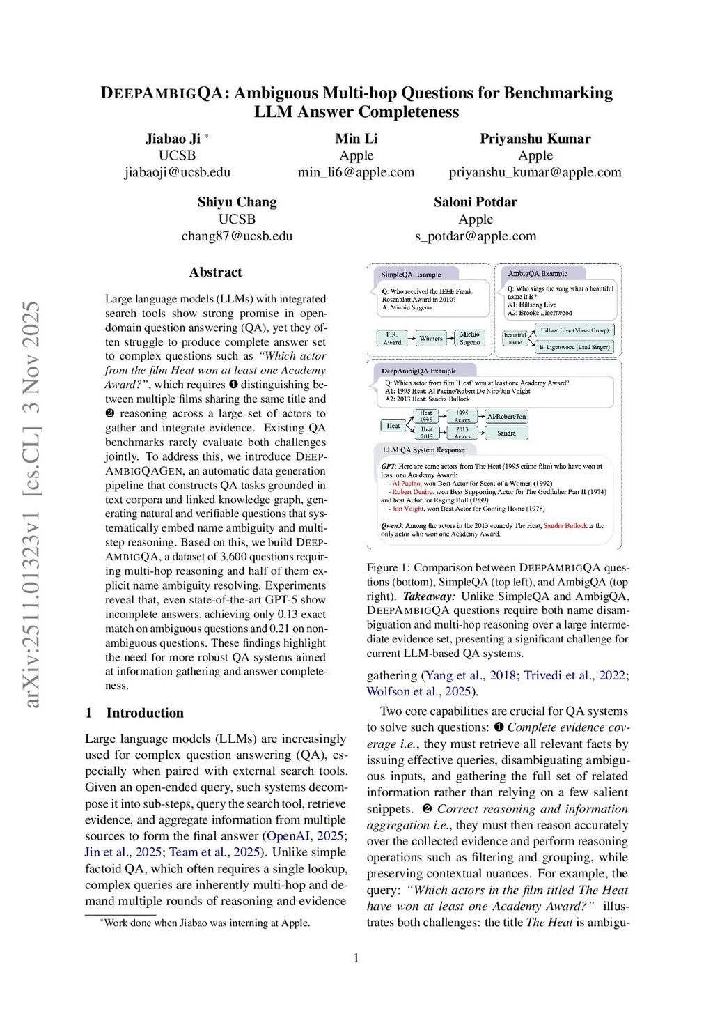 DEEPAMBIGQA: Ambiguous Multi-hop Questions for Benchmarking LLM Answer Completeness