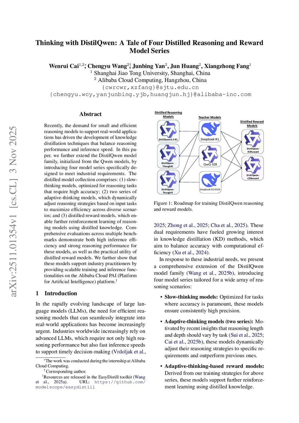 Recently, the demand for small and efficient reasoning models to support real-world applications has driven the development of knowledge distillation techniques that balance reasoning performance and inference speed. In this paper, we further extend the DistilQwen model family, initialized from the Qwen models, by introducing four model series specifically designed to meet industrial requirements. The distilled model collection comprises: (1) slow-thinking models, optimized for reasoning tasks that require high accuracy; (2) two series of adaptive-thinking models, which dynamically adjust reasoning strategies based on input tasks to maximize efficiency across diverse scenarios; and (3) distilled reward models, which enable further reinforcement learning of reasoning models using distilled knowledge. Comprehensive evaluations across multiple benchmarks demonstrate both high inference efficiency and strong reasoning performance for these models, as well as the practical utility of distilled reward models. We further show that these models support industry practitioners by providing scalable training and inference functionalities on the Alibaba Cloud PAI (Platform for Artificial Intelligence) platform.