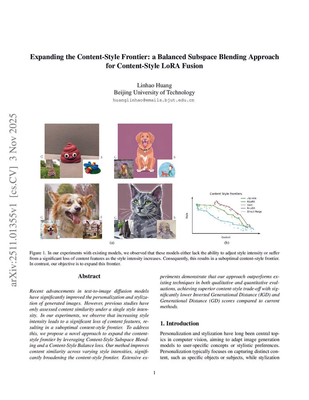Recent advancements in text-to-image diffusion models have significantly improved the personalization and stylization of generated images. However, previous studies have only assessed content similarity under a single style intensity. In our experiments, we observe that increasing style intensity leads to a significant loss of content features, resulting in a suboptimal content-style frontier. To address this, we propose a novel approach to expand the content-style frontier by leveraging Content-Style Subspace Blending and a Content-Style Balance loss. Our method improves content similarity across varying style intensities, significantly broadening the content-style frontier. Extensive experiments demonstrate that our approach outperforms existing techniques in both qualitative and quantitative evaluations, achieving superior content-style trade-off with significantly lower Inverted Generational Distance (IGD) and Generational Distance (GD) scores compared to current methods.
