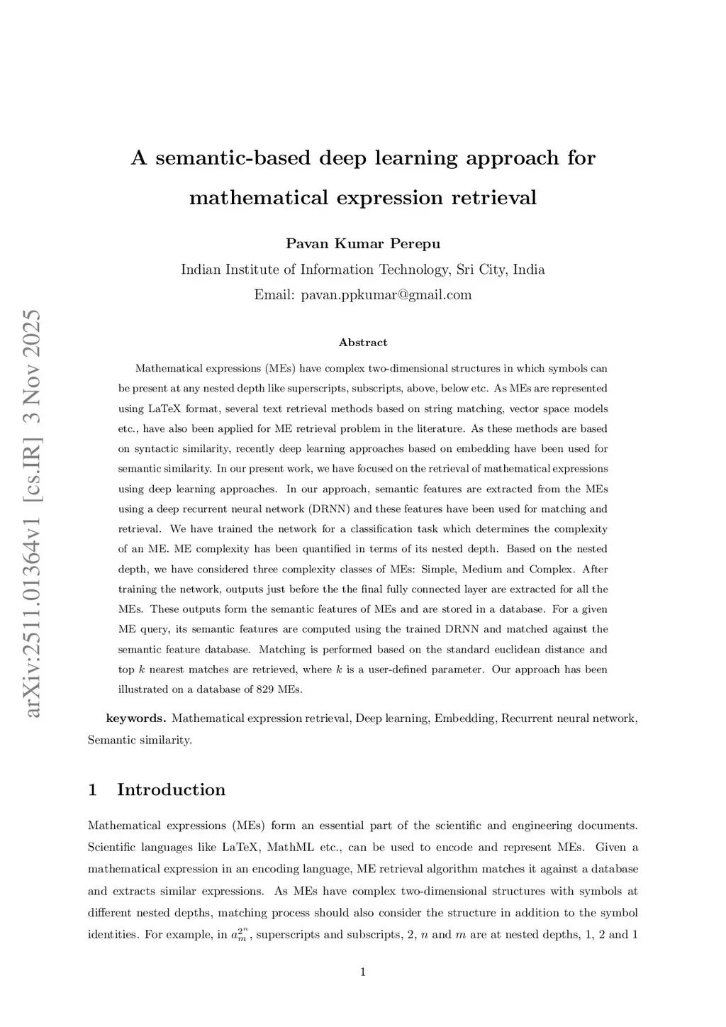 A semantic-based deep learning approach for mathematical expression retrieval