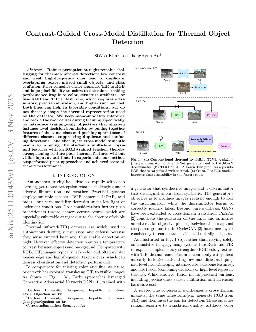 Contrast-Guided Cross-Modal Distillation for Thermal Object Detection