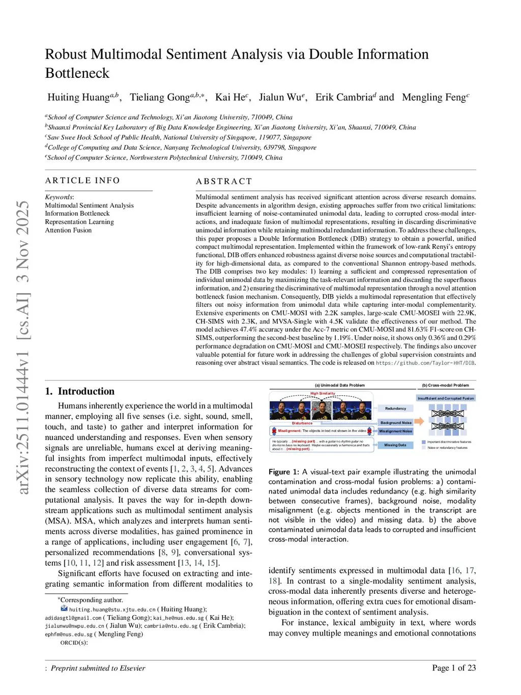 Robust Multimodal Sentiment Analysis via Double Information Bottleneck