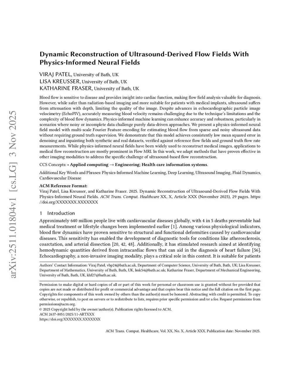 Dynamic Reconstruction of Ultrasound-Derived Flow Fields With Physics-Informed Neural Fields