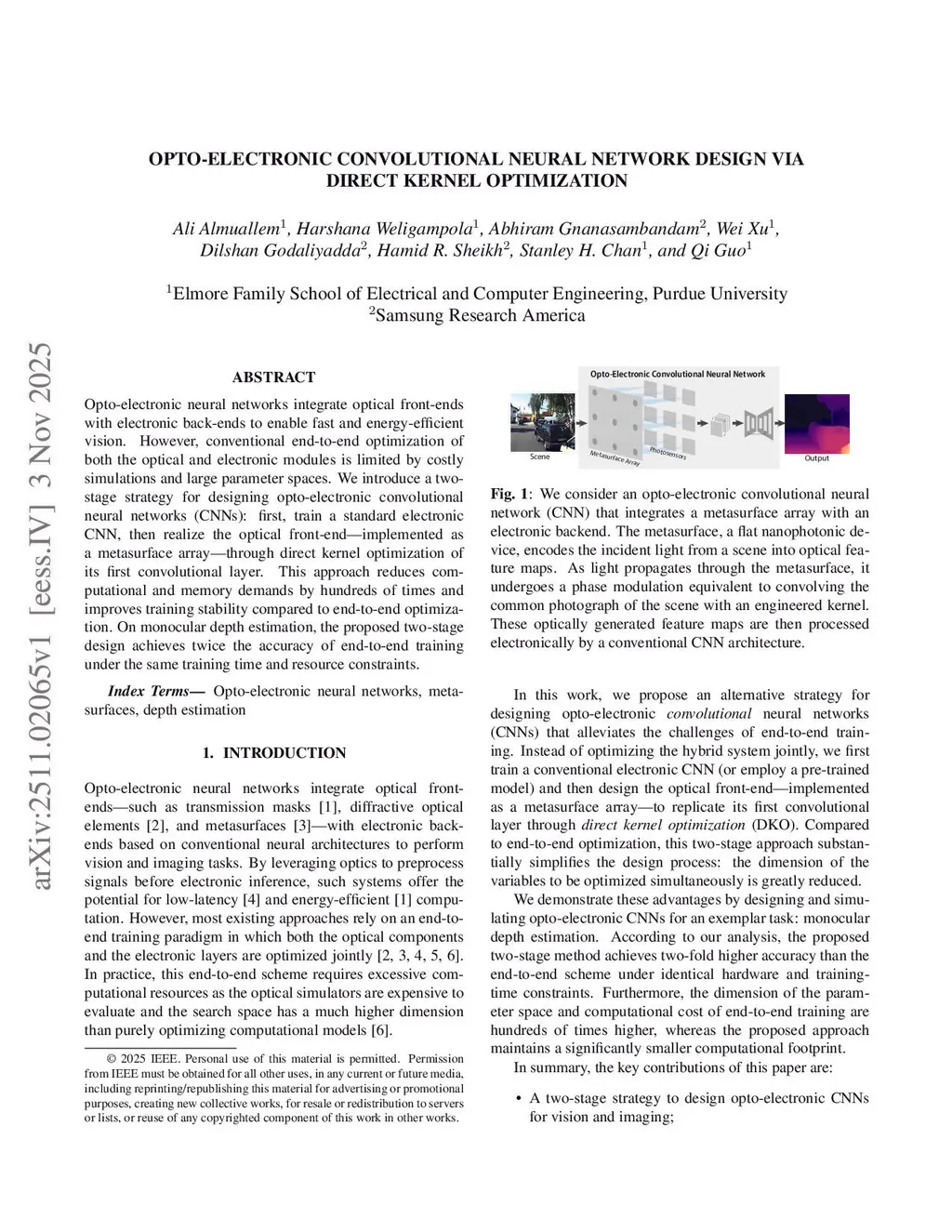 Opto-electronic neural networks integrate optical front-ends with electronic back-ends to enable fast and energy-efficient vision. However, conventional end-to-end optimization of both the optical and electronic modules is limited by costly simulations and large parameter spaces. We introduce a two-stage strategy for designing opto-electronic convolutional neural networks (CNNs): first, train a standard electronic CNN, then realize the optical front-end implemented as a metasurface array through direct kernel optimization of its first convolutional layer. This approach reduces computational and memory demands by hundreds of times and improves training stability compared to end-to-end optimization. On monocular depth estimation, the proposed two-stage design achieves twice the accuracy of end-to-end training under the same training time and resource constraints.
