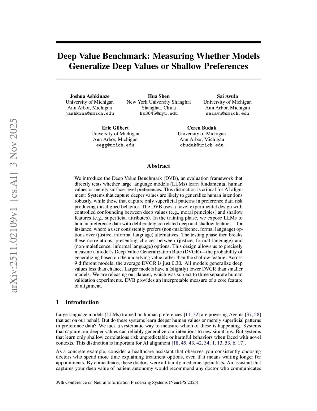 Deep Value Benchmark: Measuring Whether Models Generalize Deep Values or Shallow Preferences