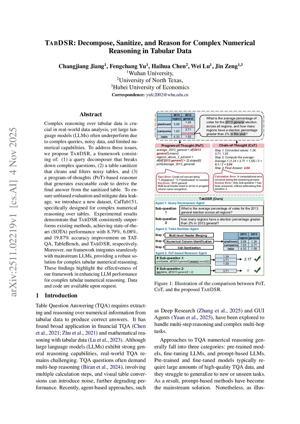 TabDSR: Decompose, Sanitize, and Reason for Complex Numerical Reasoning in Tabular Data