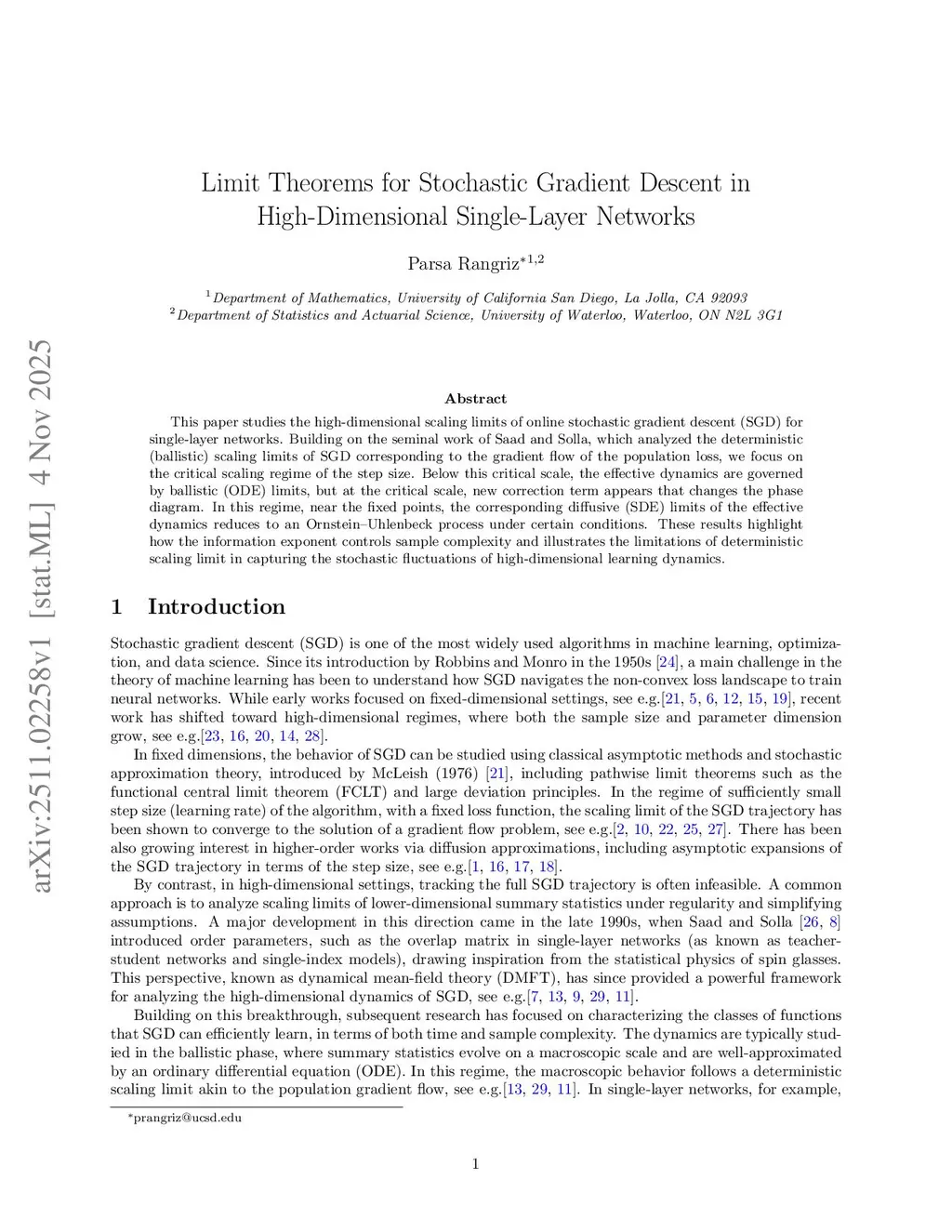 Limit Theorems for Stochastic Gradient Descent in High-Dimensional Single-Layer Networks