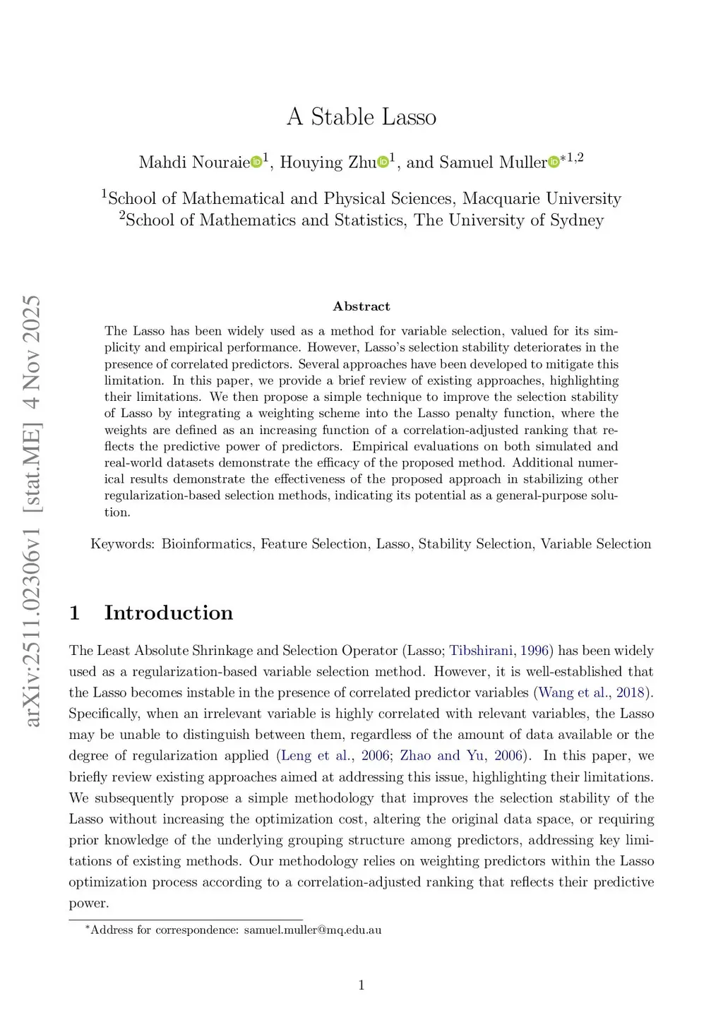 The Lasso has been widely used as a method for variable selection, valued for its simplicity and empirical performance. However, Lasso's selection stability deteriorates in the presence of correlated predictors. Several approaches have been developed to mitigate this limitation. In this paper, we provide a brief review of existing approaches, highlighting their limitations. We then propose a simple technique to improve the selection stability of Lasso by integrating a weighting scheme into the Lasso penalty function, where the weights are defined as an increasing function of a correlation-adjusted ranking that reflects the predictive power of predictors. Empirical evaluations on both simulated and real-world datasets demonstrate the efficacy of the proposed method. Additional numerical results demonstrate the effectiveness of the proposed approach in stabilizing other regularization-based selection methods, indicating its potential as a general-purpose solution.