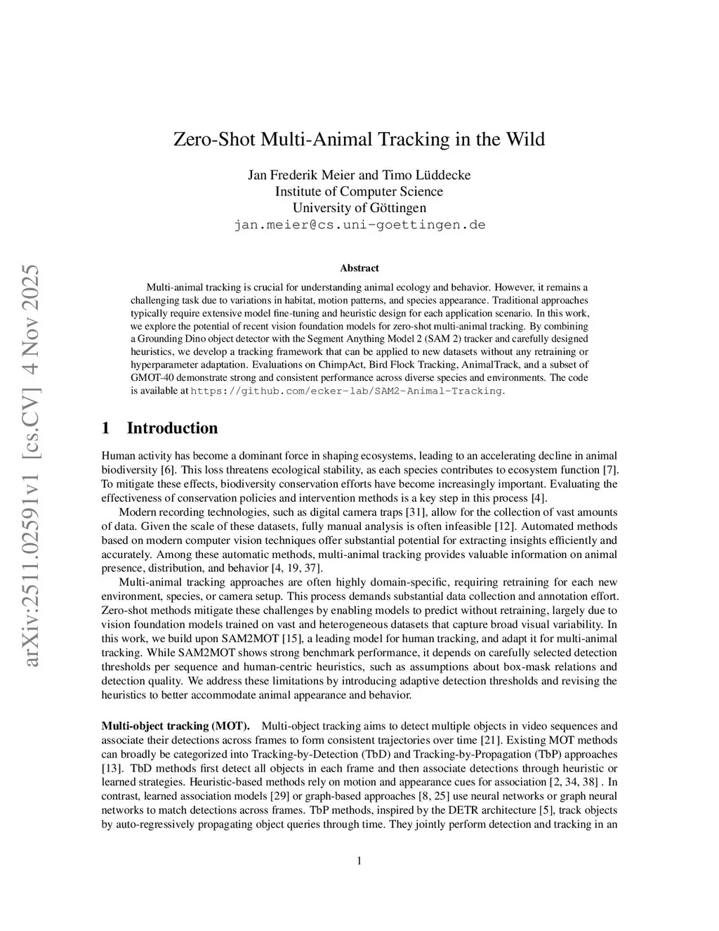 Multi-animal tracking is crucial for understanding animal ecology and behavior. However, it remains a challenging task due to variations in habitat, motion patterns, and species appearance. Traditional approaches typically require extensive model fine-tuning and heuristic design for each application scenario. In this work, we explore the potential of recent vision foundation models for zero-shot multi-animal tracking. By combining a Grounding Dino object detector with the Segment Anything Model 2 (SAM 2) tracker and carefully designed heuristics, we develop a tracking framework that can be applied to new datasets without any retraining or hyperparameter adaptation. Evaluations on ChimpAct, Bird Flock Tracking, AnimalTrack, and a subset of GMOT-40 demonstrate strong and consistent performance across diverse species and environments. The code is available atthis https URL.