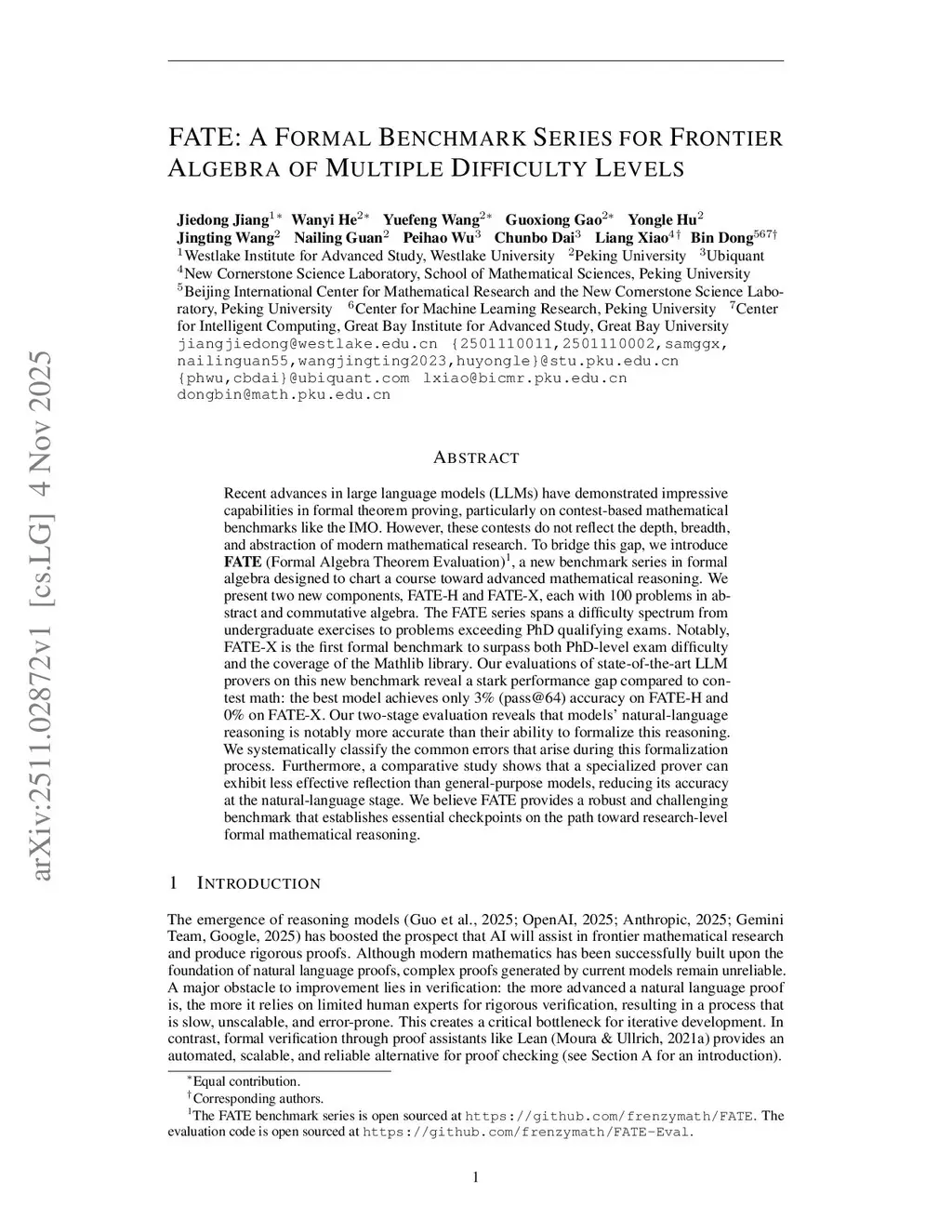 FATE: A Formal Benchmark Series for Frontier Algebra of Multiple Difficulty Levels