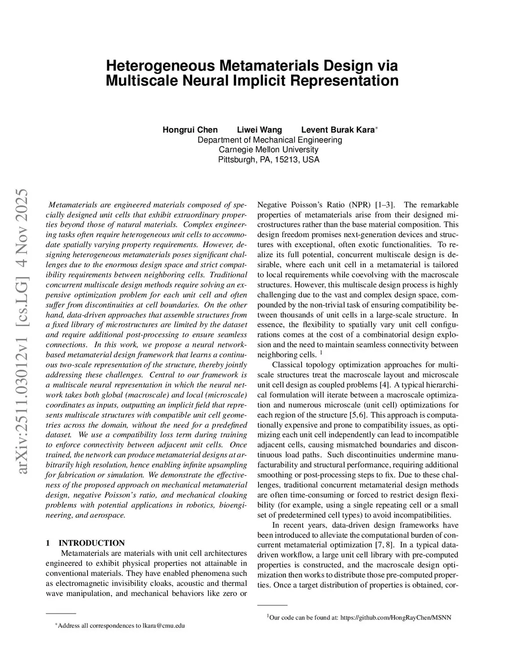 Heterogeneous Metamaterials Design via Multiscale Neural Implicit Representation