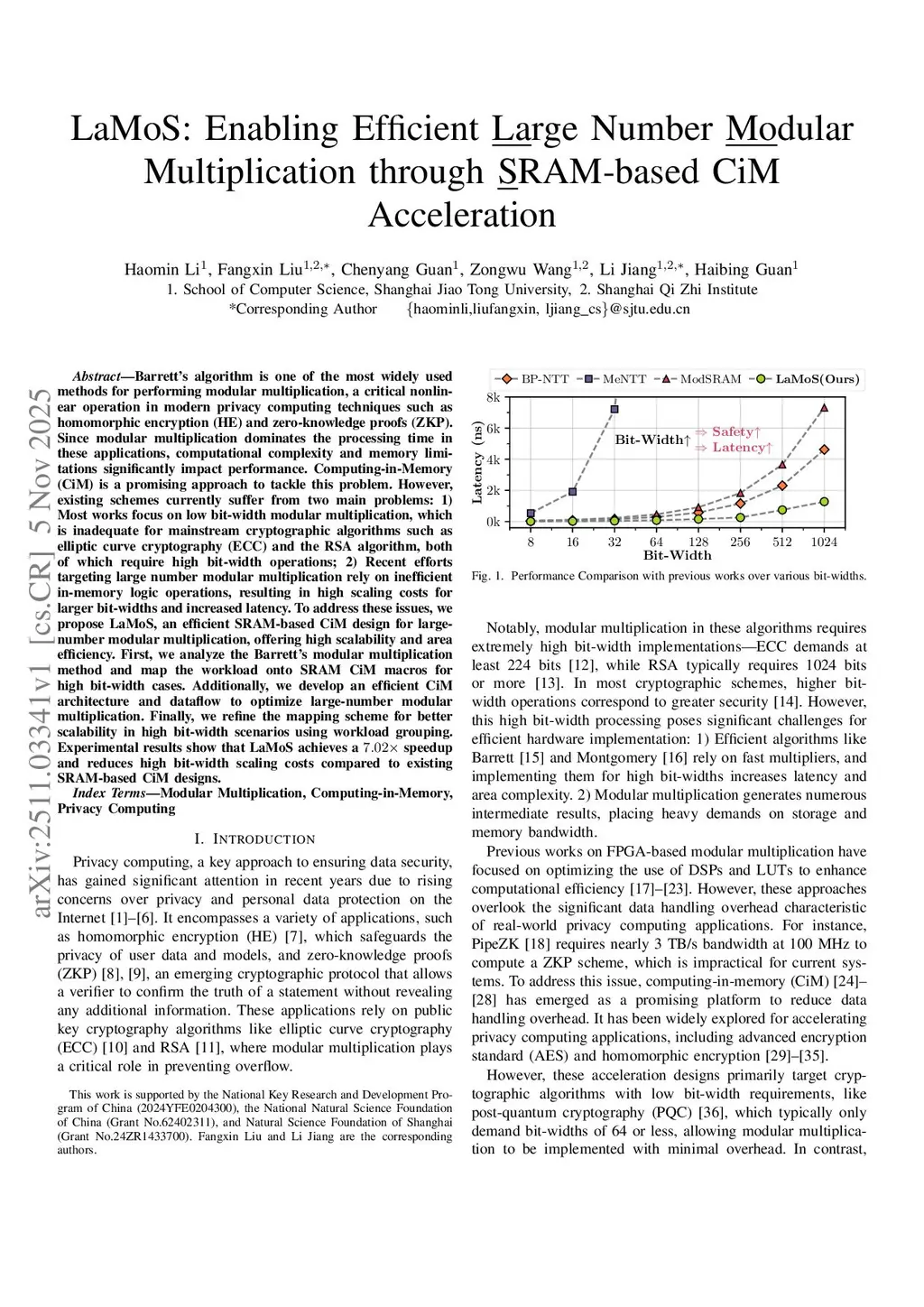 LaMoS: Enabling Efficient Large Number Modular Multiplication through SRAM-based CiM Acceleration