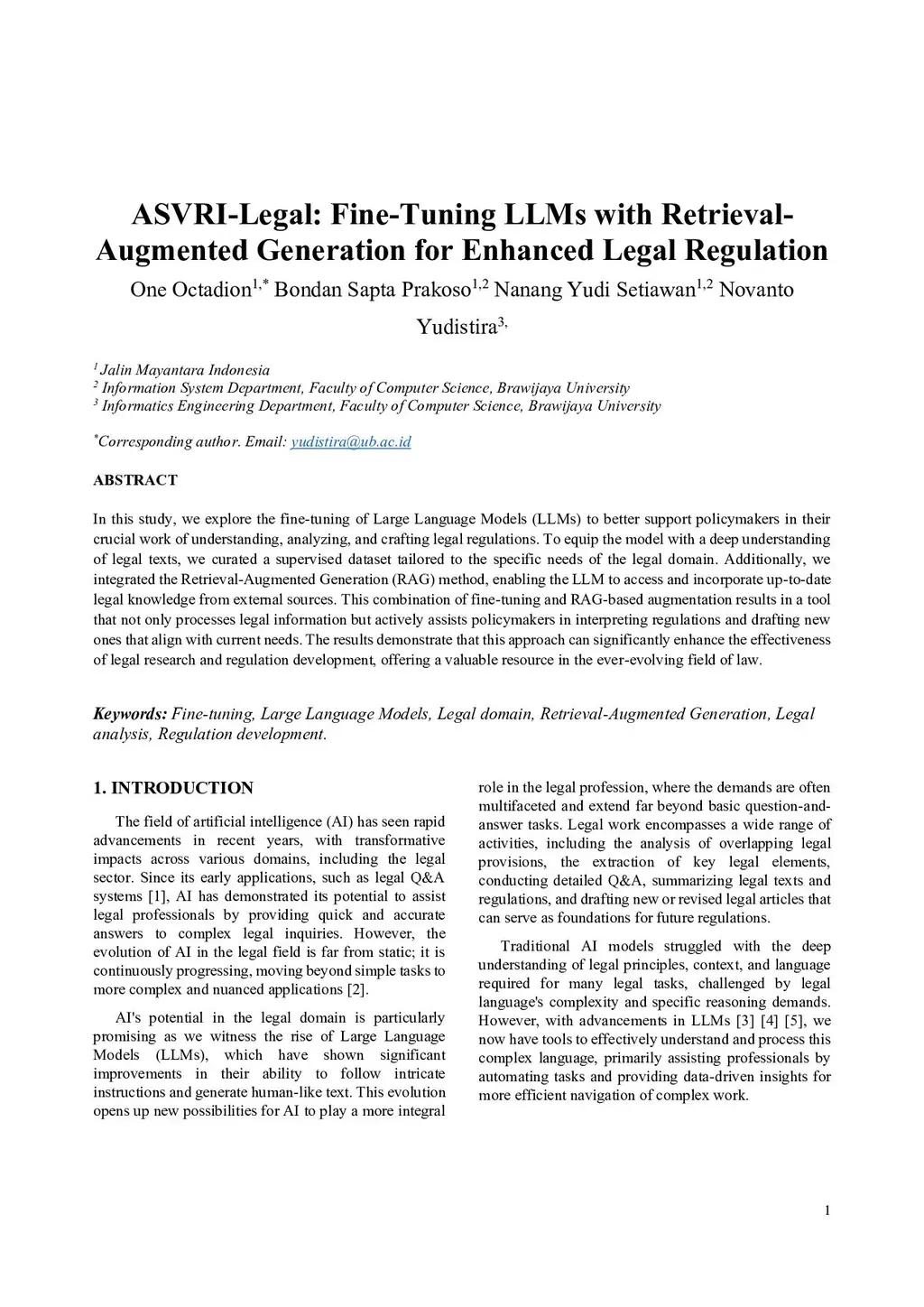 ASVRI-Legal: Fine-Tuning LLMs with Retrieval Augmented Generation for Enhanced Legal Regulation