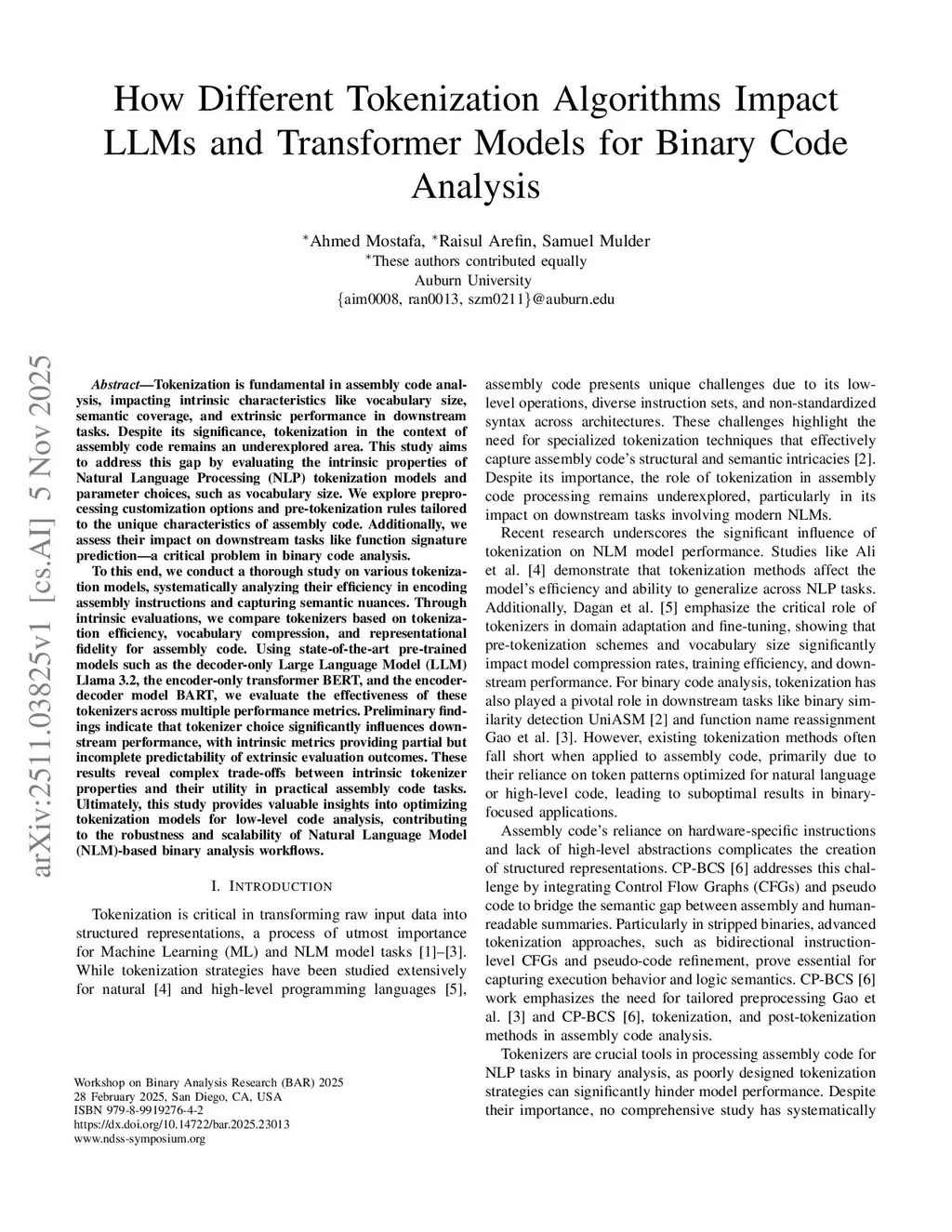 How Different Tokenization Algorithms Impact LLMs and Transformer Models for Binary Code Analysis