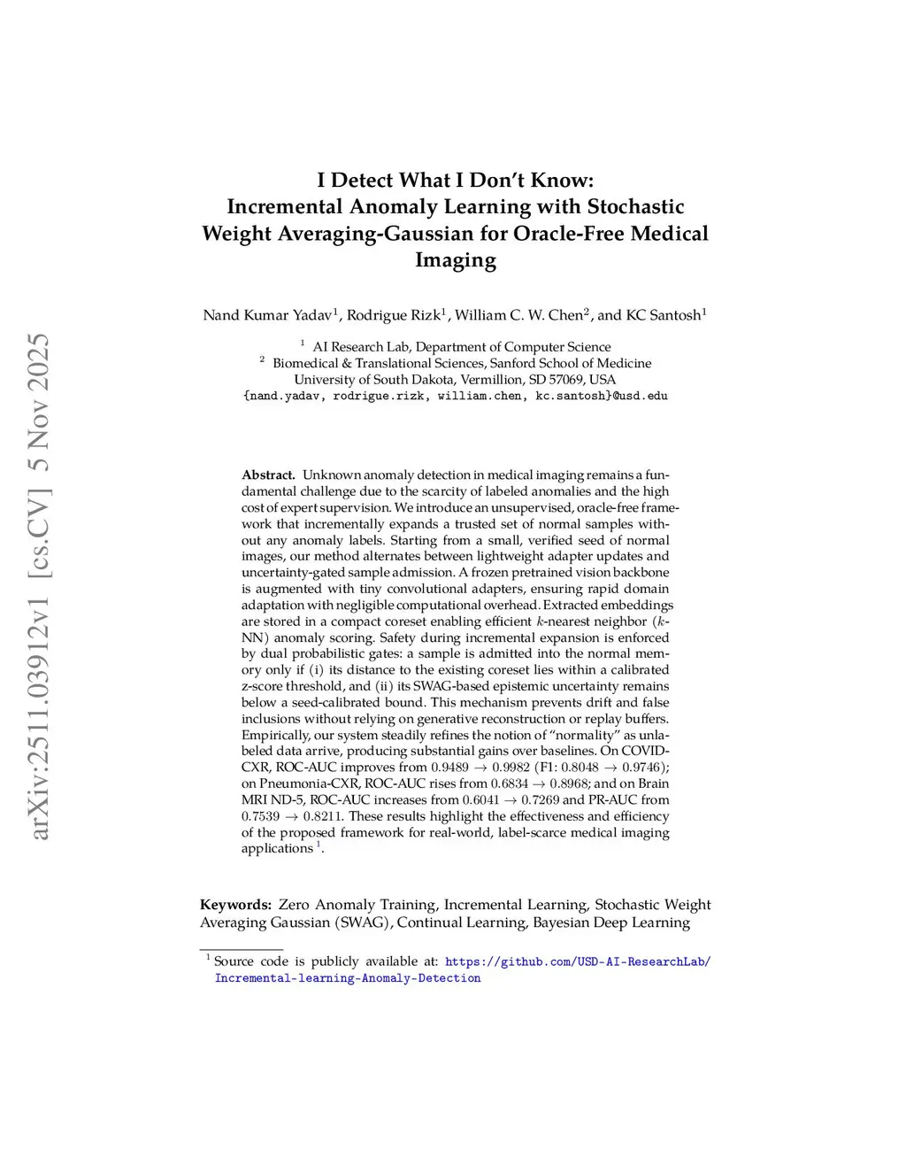 I Detect What I Don't Know: Incremental Anomaly Learning with Stochastic Weight Averaging-Gaussian for Oracle-Free Medical Imaging